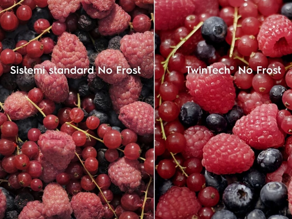 Electrolux sfrutta gli ultimi sviluppi tecnologici per inserire funzionalità innovative e pratiche in ogni prodotto: dalla tecnologia TwinTech® Total, che applica due sistemi di raffreddamento diversi a frigorifero e congelatore, a DynamicAir, la tecnologia d’avanguardia che evita che gli alimenti si secchino. Scegliere un frigocongelatore Electrolux significa anche risparmiare e salvaguardare l’ambiente, grazie alla tecnologia ColdSense: dopo l’apertura della porta, la temperatura del frigo si ristabilisce più velocemente rispetto ai frigoriferi standard, evitando così gli sprechi alimentari.