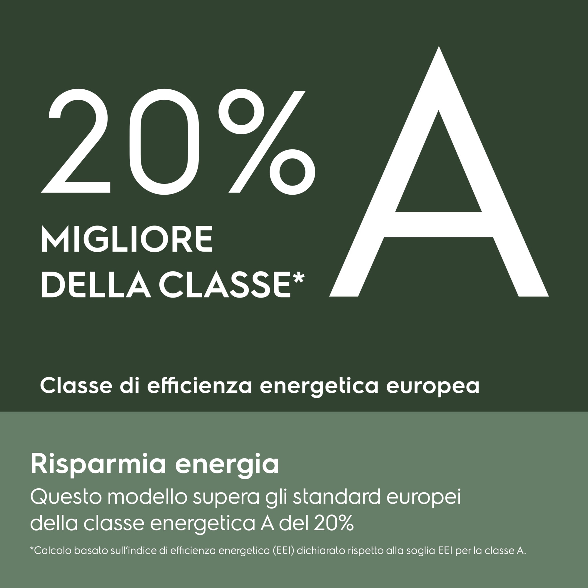 Non solo la migliore classificazione energetica* ma anche risparmio di risorse a ogni lavaggio