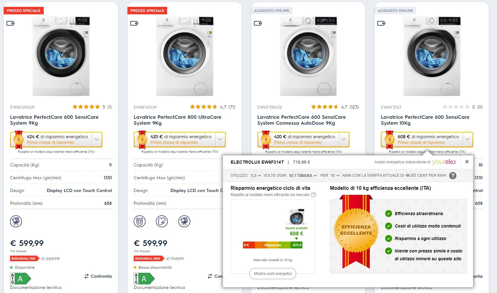 Youreko ti permette di comprendere il reale beneficio economico che puoi ottenere acquistando un elettrodomestico ad alta efficienza energetica. Riducendo il consumo energetico non solo risparmierai sulla bolletta, ma ridurrai anche il tuo impatto ambientale.