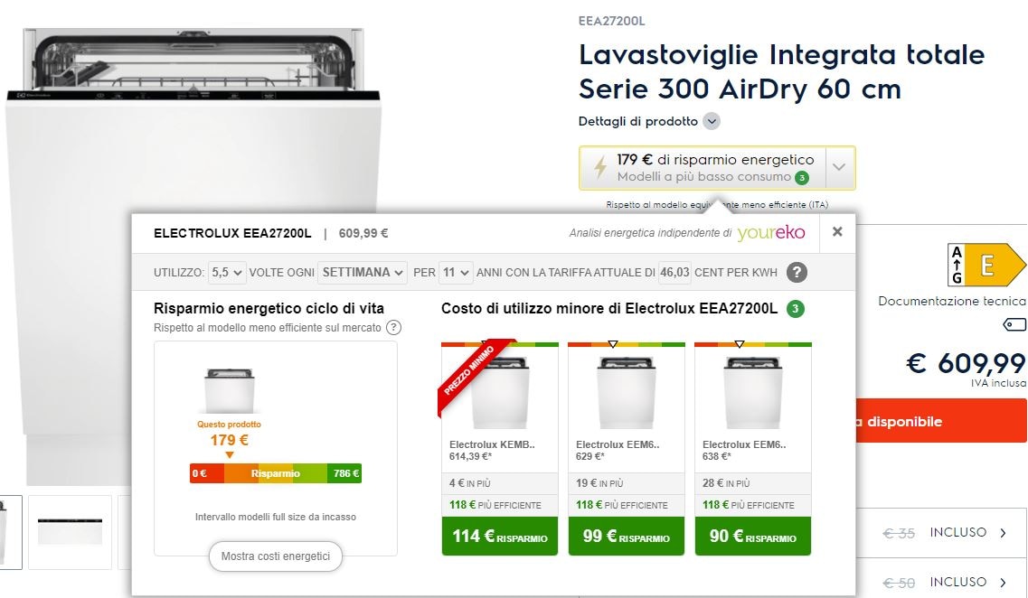 Scopri il risparmio energetico dei nostri elettrodomestici con Youreko.