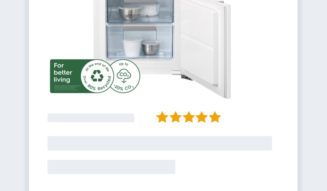 I nostri frigoriferi sono realizzati in modo tale da permettere il riciclo di oltre l’80% dei materiali dopo la fine della vita utile (considerando i frigoriferi raccolti per il riciclaggio nell’UE).