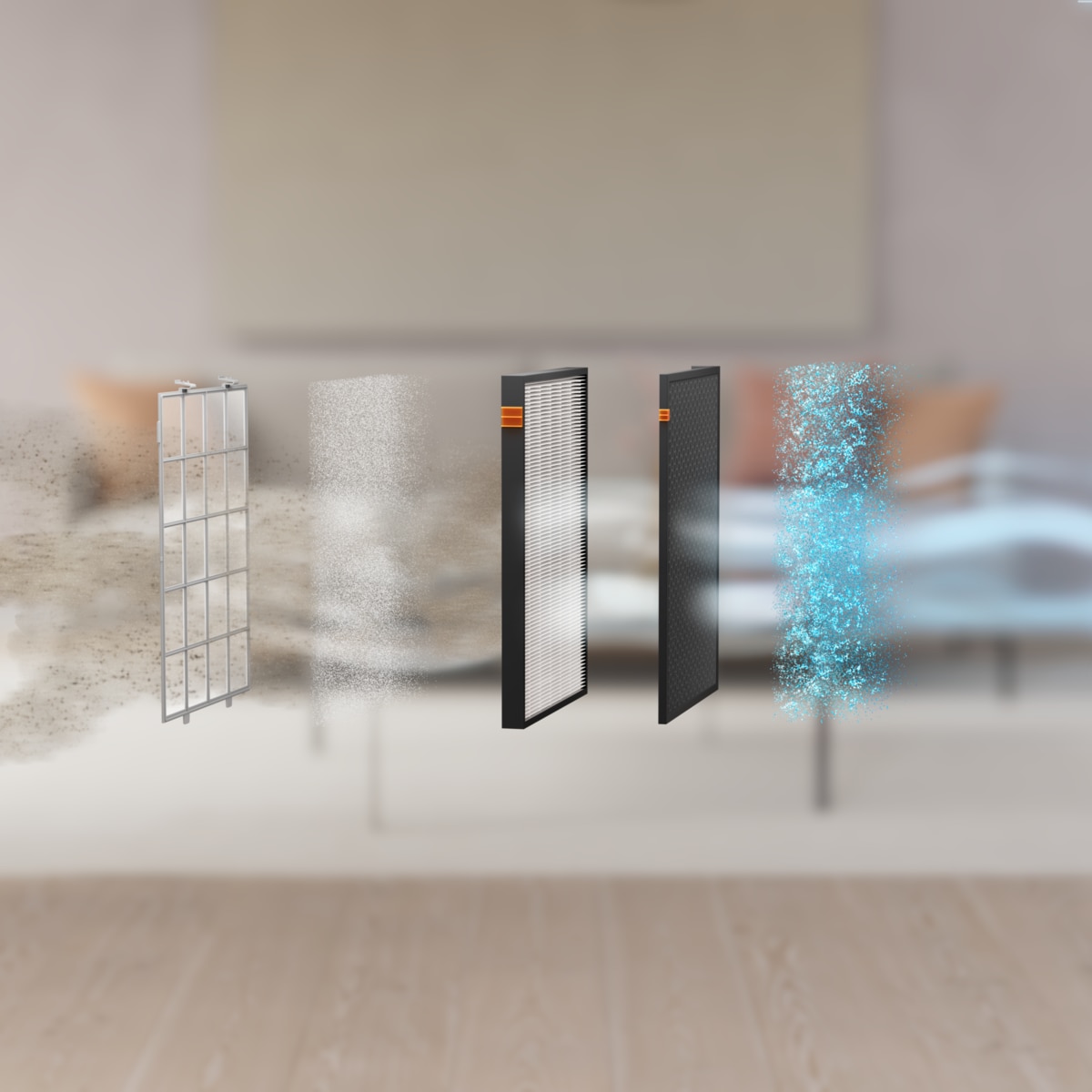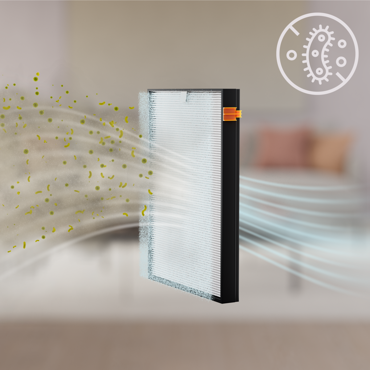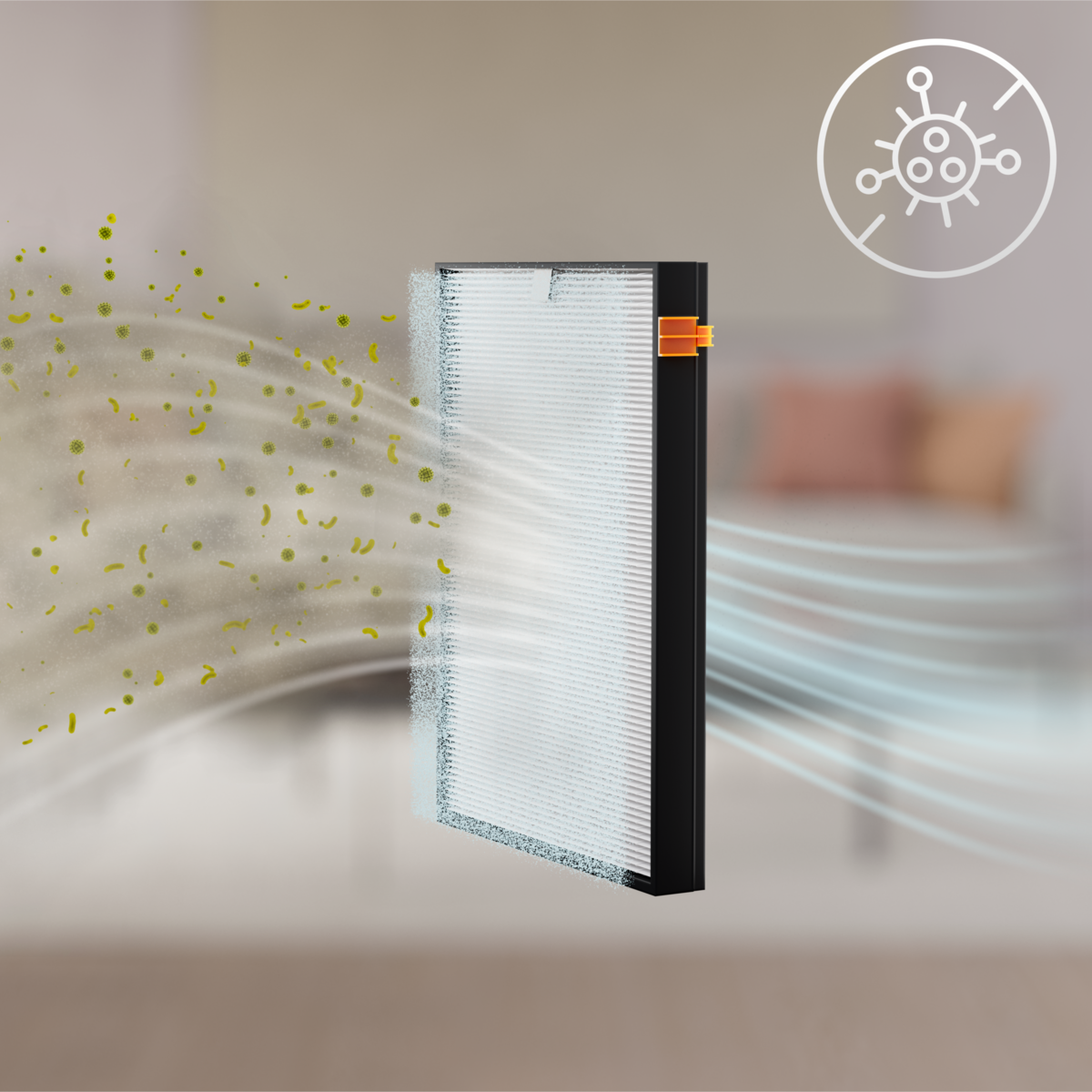 Purifica l’aria di casa dalle particelle ultrafini trasmesse per via aerea.