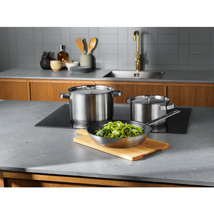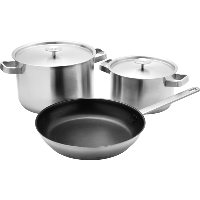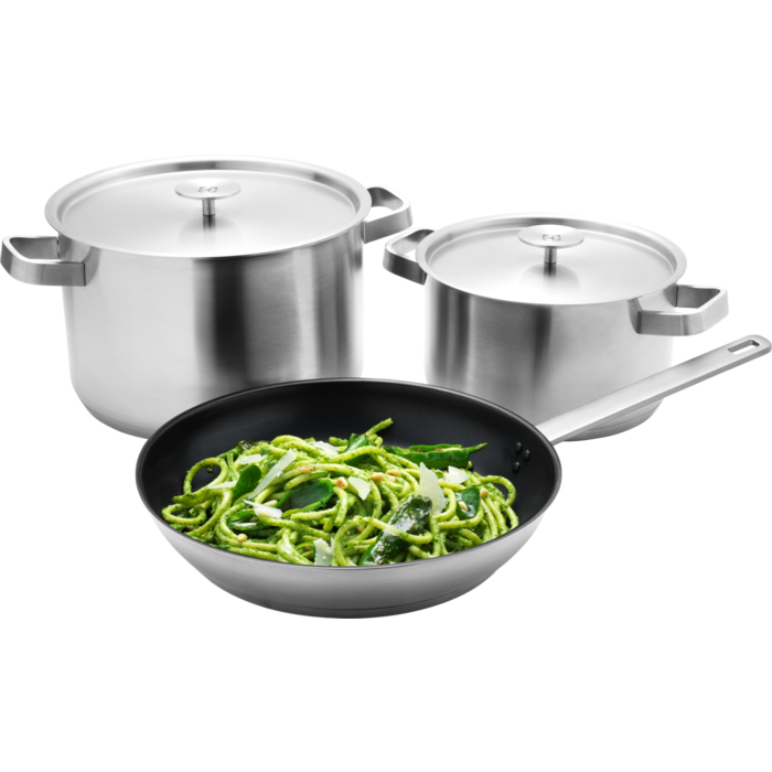 Il set di pentole large è pensato per la cucina di tutti i giorni e per essere utilizzato in ogni occasione. Composto da una padella di 28cm di diametro anti-aderente, una casseruola, una pentola con capienza 7Lt e coperchi inclusi.