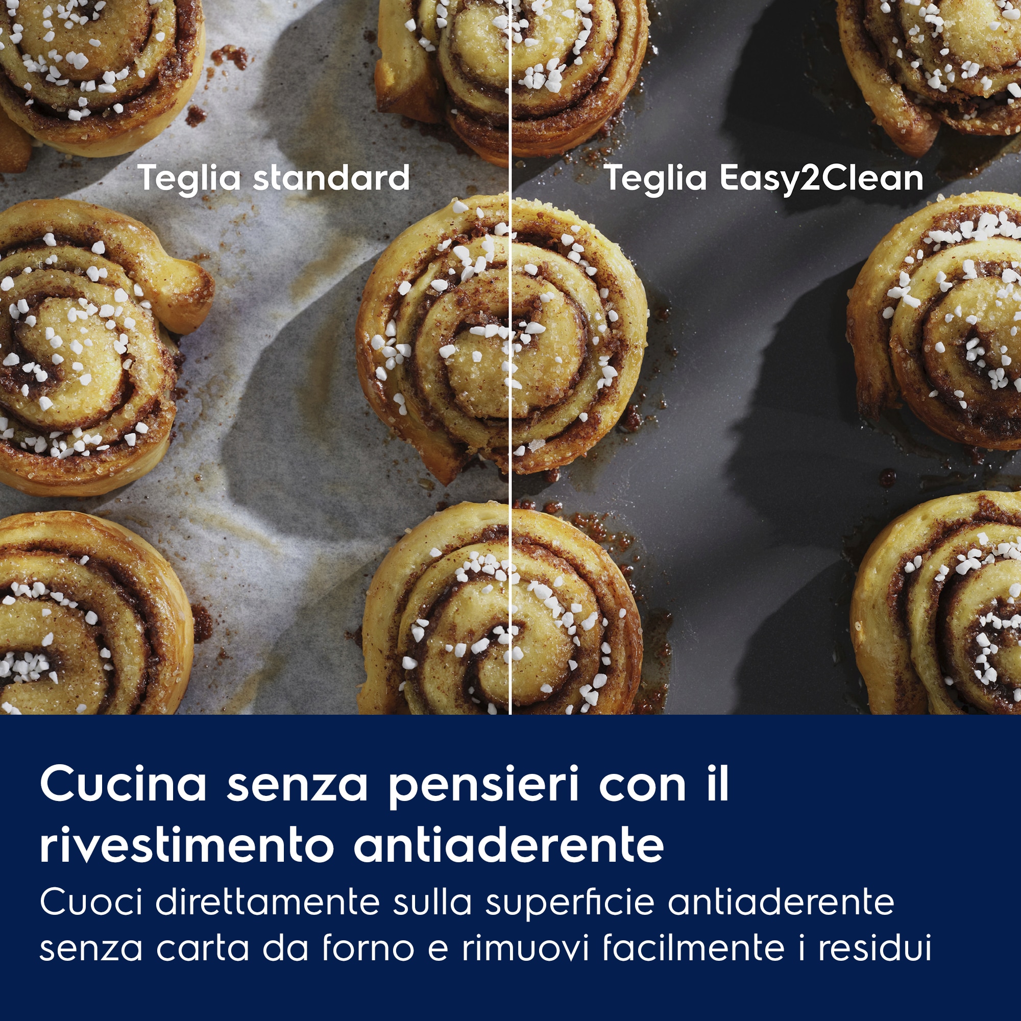 Il set da forno BakeWell Easy2Clean è progettato per essere pratico e versatile, senza rinunciare a colore e stile. Grazie al rivestimento antiaderente in ceramica senza PFAS come il PTFE, rende la cottura e la pulizia ancora più semplici.