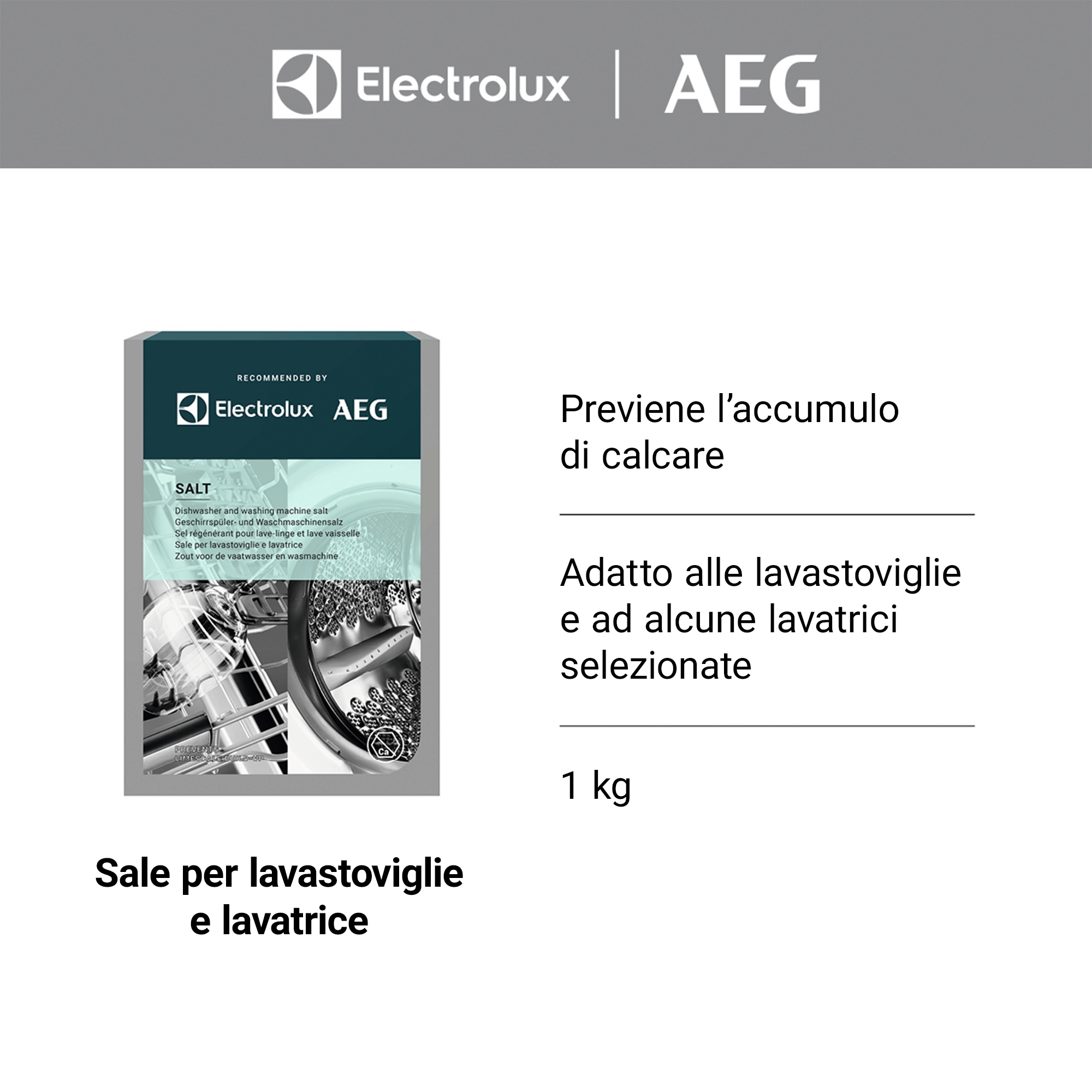 Il nostro sale impedisce il depositarsi di calcare e calcio, che influiscono negativamente sui tuoi elettrodomestici. Questo sale può essere utilizzato nelle lavastoviglie e in specifici modelli di lavatrici, per avere piatti splendenti e capi dai colori vivaci.