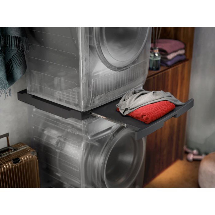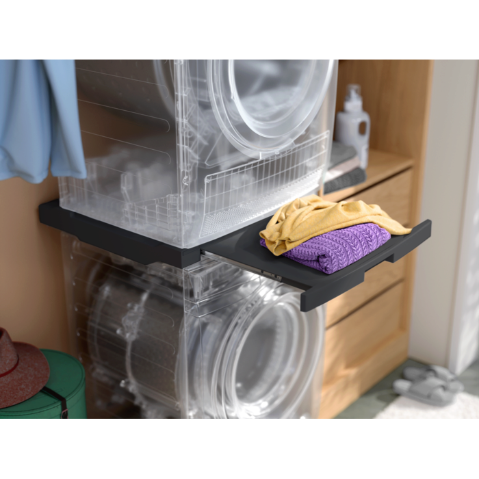 Impilare lavatrice e asciugatrice è un'ottima idea per risparmiare spazio. Il kit di congiunzione consente di fissare l'asciugatrice sopra la lavatrice, per creare un angolo bucato compatto e ordinato.