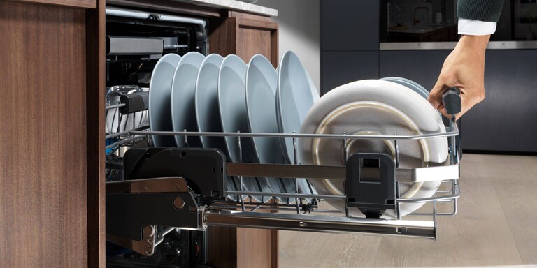 Grazie alla nostra esclusiva funzione ComfortLift® non dovrai più chinarti per caricare o scaricare la lavastoviglie. Stringendo delicatamente la maniglia, il cestello inferiore si solleva dolcemente verso di te. È un'esclusiva mondiale creata da noi, per la tua comodità.
