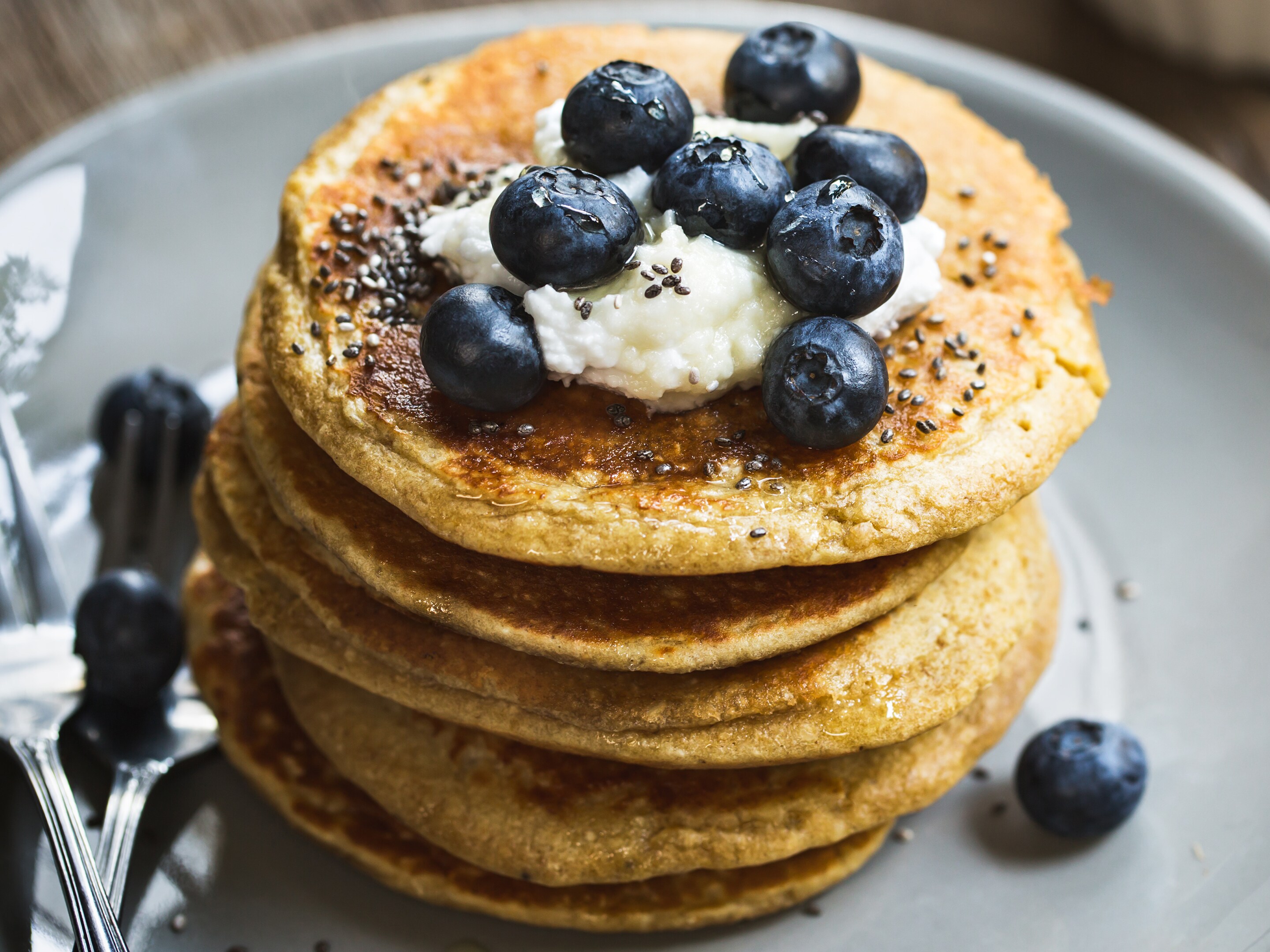 Pancakes alle mandorle con cocco e mirtilli