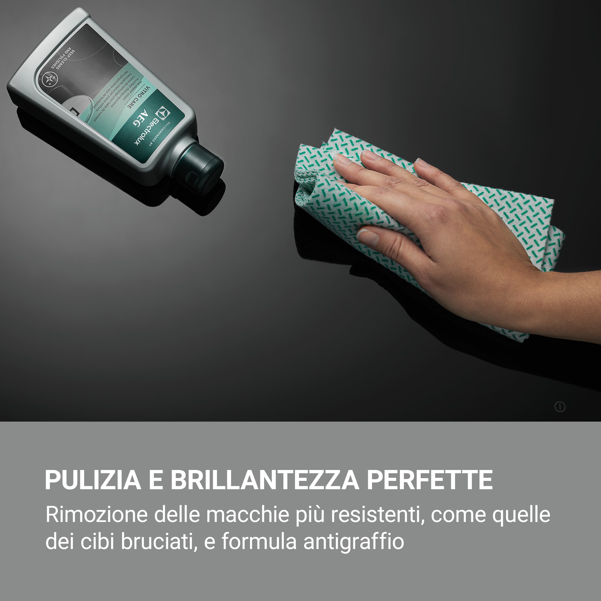 Detergente in crema per un pulito splendente del piano cottura. Il prodotto in crema di alta qualità pulisce a fondo i piani cottura in ceramica, a induzione e in vetro, lasciando una pellicola protettiva sulle superfici. Rimuove anche le macchie ostinate come i residui di cibo bruciato.