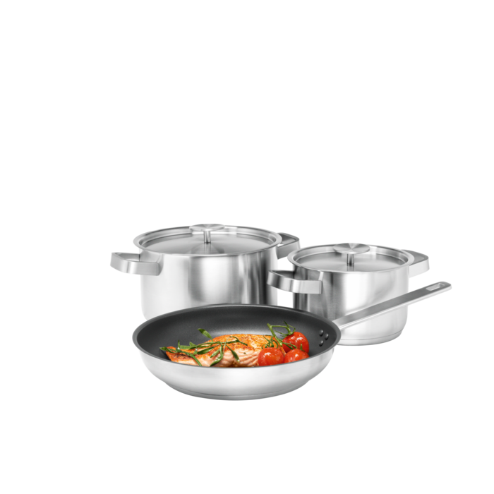 Preparati a liberare la tua creatività in cucina con il set di pentole da tre pezzi di Electrolux. Il set è composto da una padella (24 cm) e due tegami (16 cm, 20 cm). Studiate per l'utilizzo con i piani ad induzione, ma adatte a tutti i piani cottura, sono tutto ciò che ti serve per creare piatti deliziosi ogni giorno.