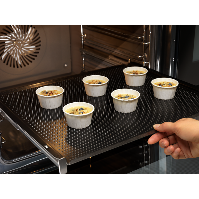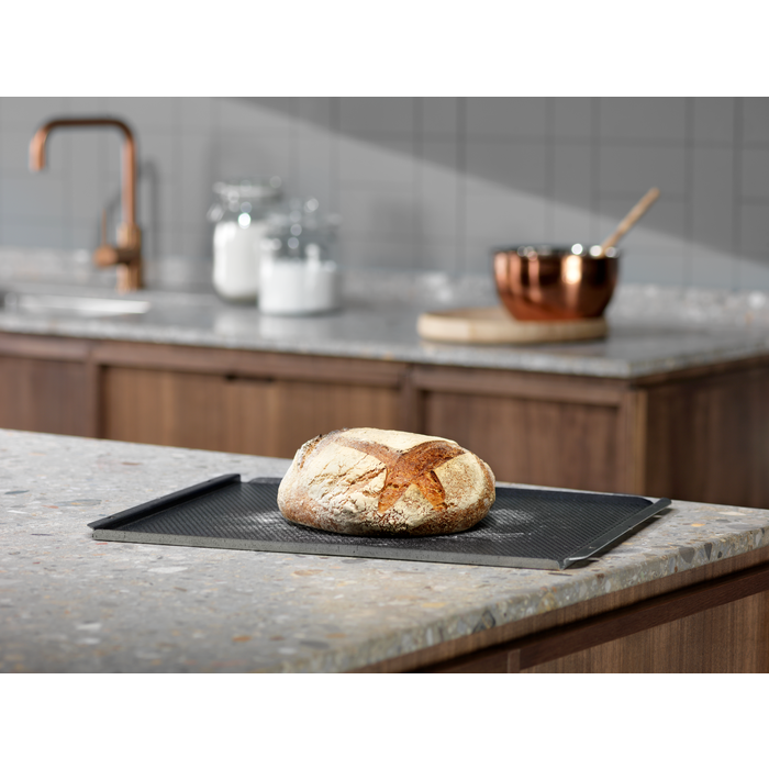 Sfornate il pane come veri professionisti e sempre in assoluta semplicità. Gustatevi baguette e dolci appena sfornati, soffici all'interno e con una crosta perfettamente dorata all'esterno. I fori sulla lamiera in alluminio consentono al calore e al vapore di circolare liberamente sull'impasto creando una consistenza croccante, ma mantenendo soffice e morbido l'interno. È inoltre ideale per essiccare cibi quali anelli di mela o verdure. Antiaderente e facilissima da pulire. Realizzata per essere utilizzata con i forni CombiSteam Electrolux. Dimensioni: 46,6 x 38,5 cm
