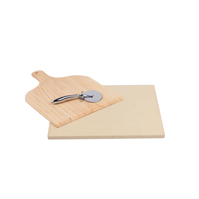 La pietra per pizza mantiene le alte temperature per trasferire calore all'impasto in modo rapido e uniforme garantendo ottimi risultati e deliziose pizze sempre croccanti. Funziona sia con pizze fatte in casa che surgelate ed è ideale per cucinare torte salate e vari tipi di pane come ad esempio la focaccia. Il Set è composto da: pietra refrattaria, paletta di legno e taglierina in acciaio inox.