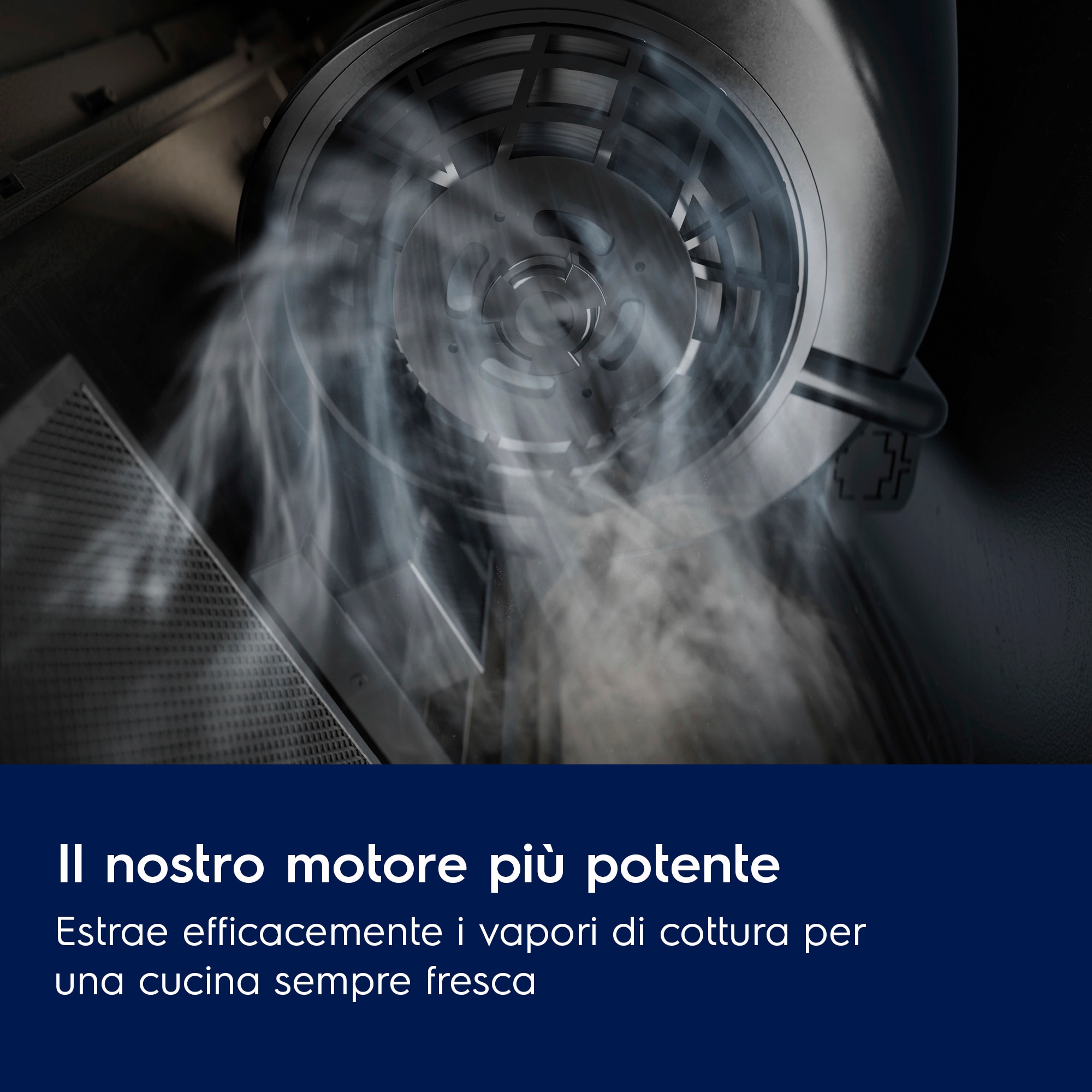 Divertiti a cucinare con la famiglia e gli amici in una cucina fresca. Con livelli di rumore ridotti e una classe energetica A e superiore, le nostre cappe puliscono l'aria in modo più efficiente, creando un'atmosfera accogliente.