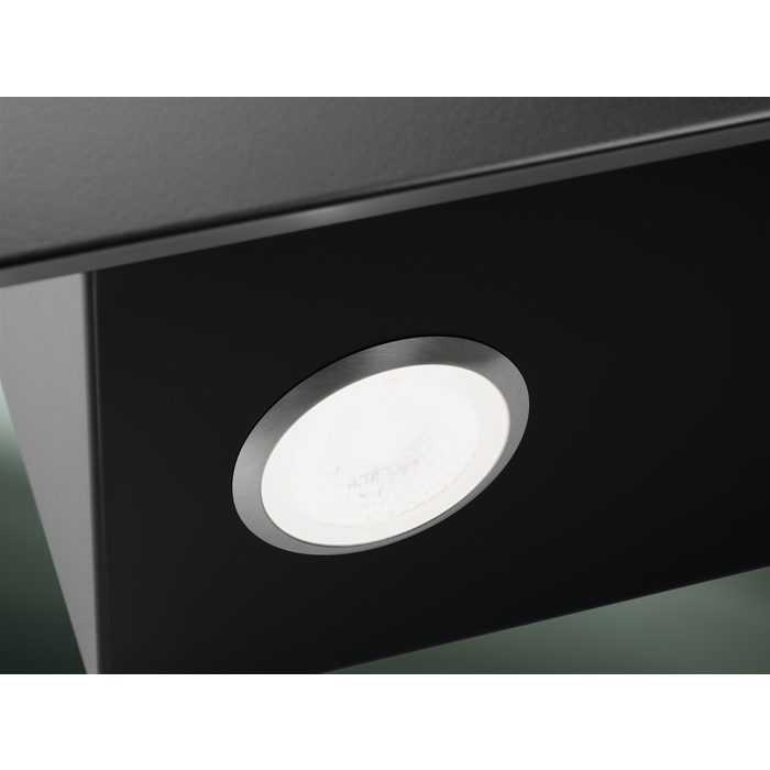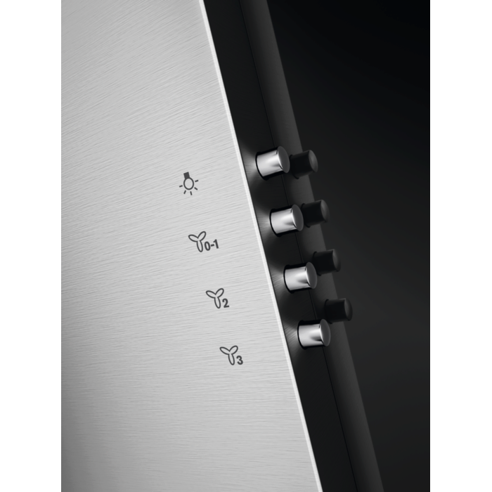 Cappa verticale – 90 cm; Portata massima aspirante 600 m³/h; Aspirazione perimetrale; 1 motore ; Comandi: pulsantiera meccanica; Regolazione motore a 3 velocità; 2 filtri in metallo lavabili; 2 luci LED da 2,5 W; Installabile in modalità filtrante/aspirante; Classe energetica C; Estetica nera