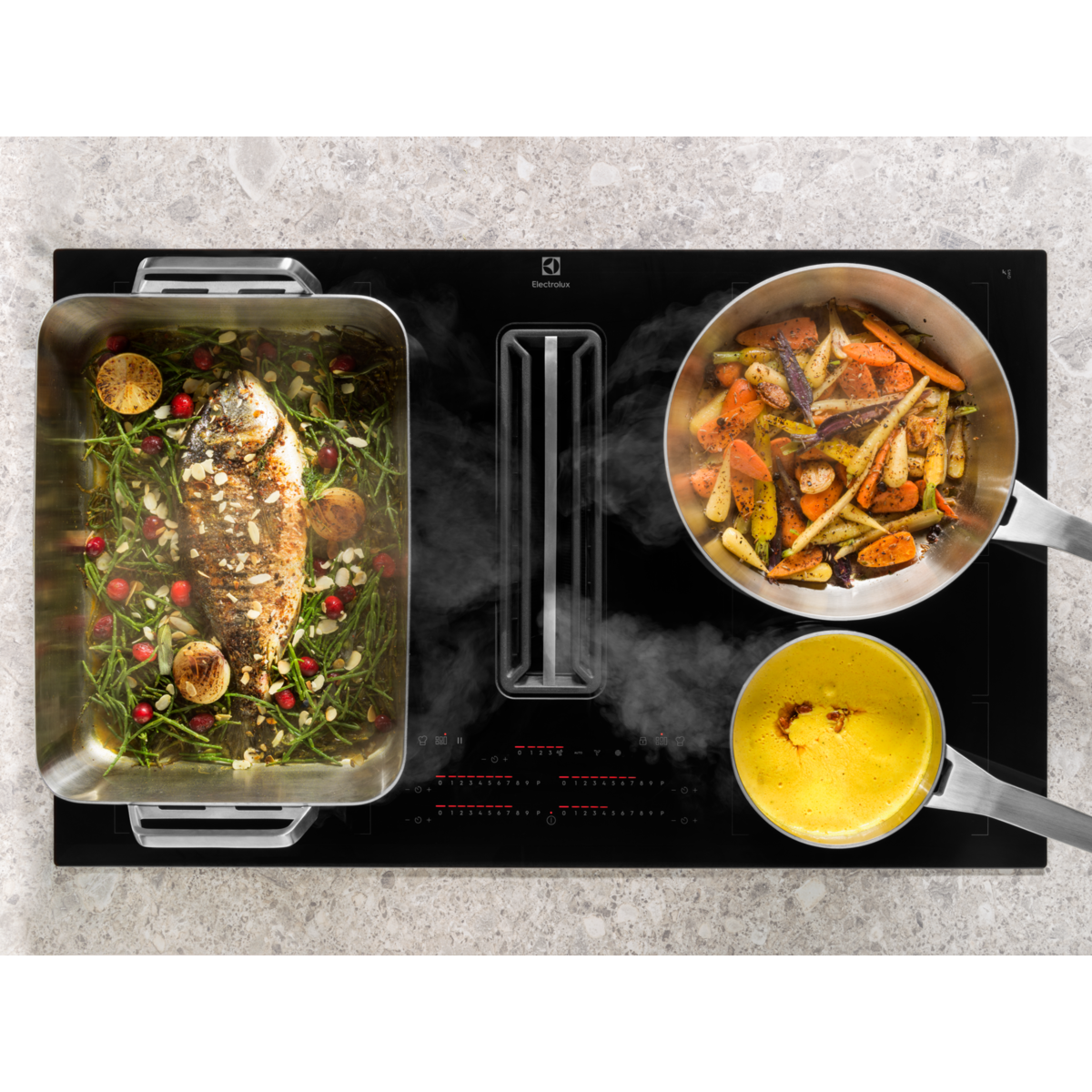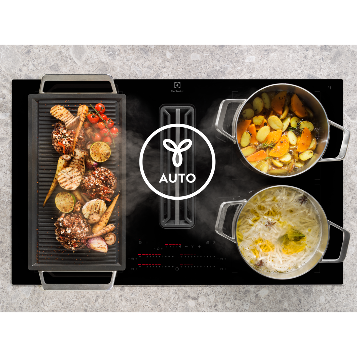 I piani cottura a induzione Electrolux EcoLine con aspirazione integrata sono selezionati in base alla classe energetica più alta.