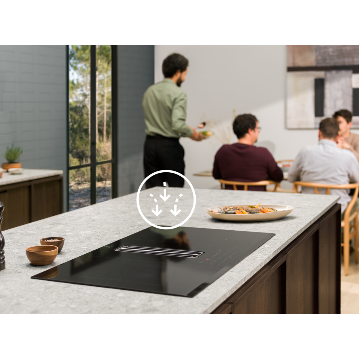 Piano ad induzione con cappa integrata Bridge con eXtractor versione filtrante
