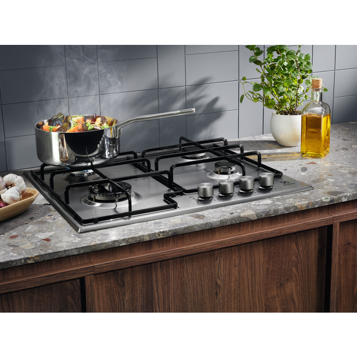 Nuova gamma di piani cottura a gas, progettati per inserirsi perfettamente in ambienti cucina moderni, in cui prevalgono atmosfere e materiali freddi e tecnologici. Una gamma completa per dimensioni, finiture, funzionalità e disposizione dei comandi, sia frontali sia laterali.