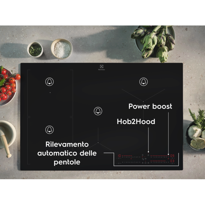 Il piano 700 SenseBoil® regola l'acqua bollente. Regola automaticamente le impostazioni della temperatura valutando quando l'acqua è vicina al punto di ebollizione, portandola al sobbollimento continuo. Così potrai concentrarti a preparare piatti deliziosi senza dover controllare l'acqua che bolle.