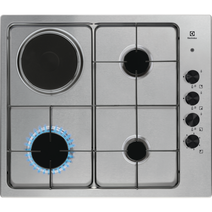 Grazie alla combinazione di tre bruciatori a gas più una zona di cottura elettrica, potete scegliere liberamente la sorgente di calore più adatta per i vostri piatti.
