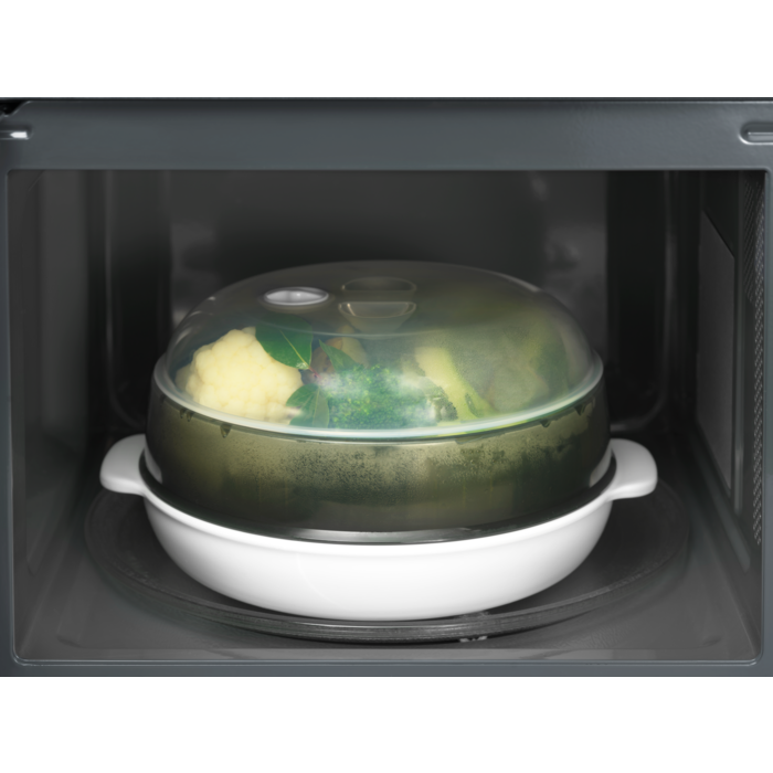 Il Microonde 800 AutoSteam è dotato di funzioni di cottura a vapore che consentono di preservare le sostanze nutritive di verdure e altri piatti. È facile mangiare sano con la cucina a vapore.