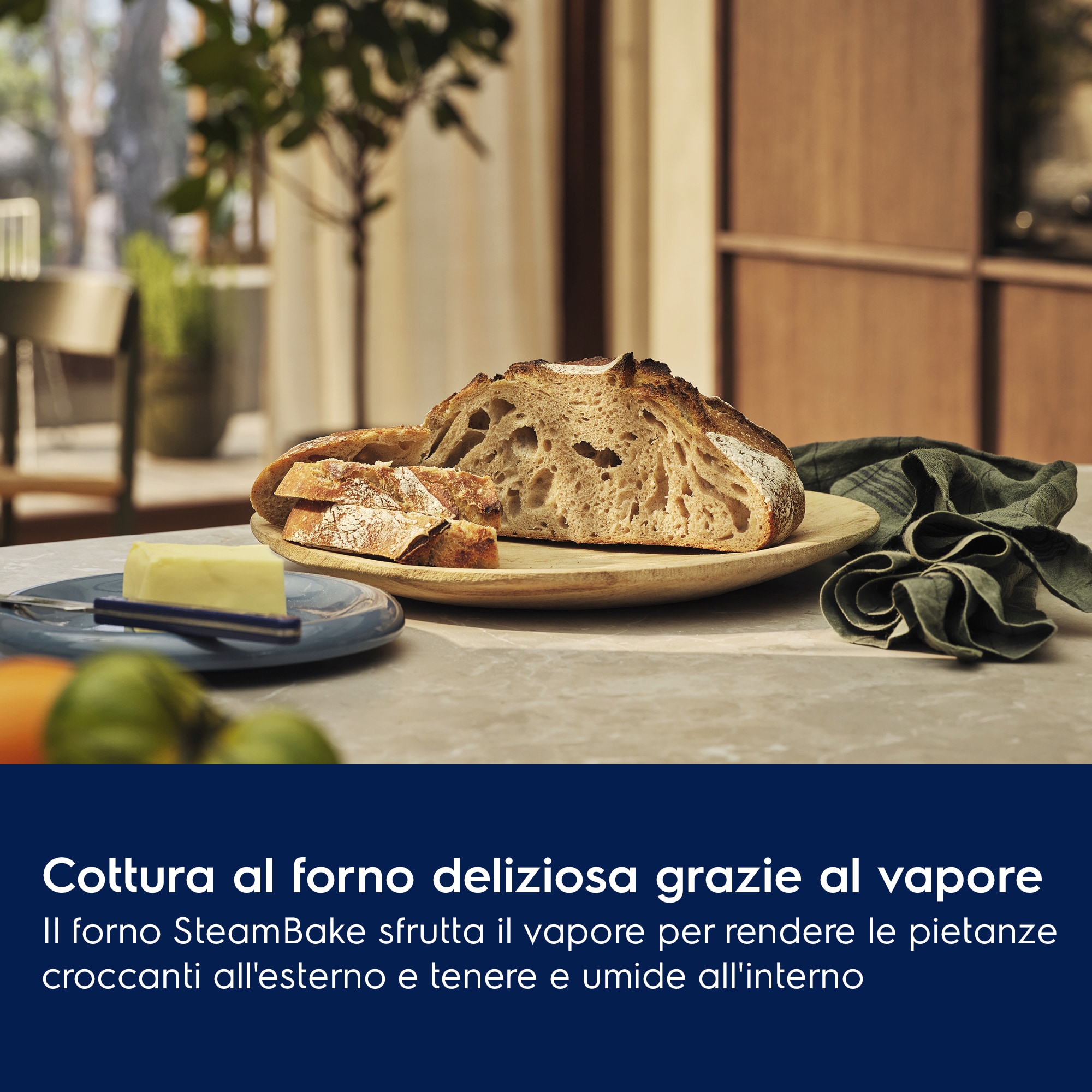 Il forno SteamBake cuoce con il vapore, in modo che i piatti siano croccanti all’esterno e teneri e umidi all’interno.