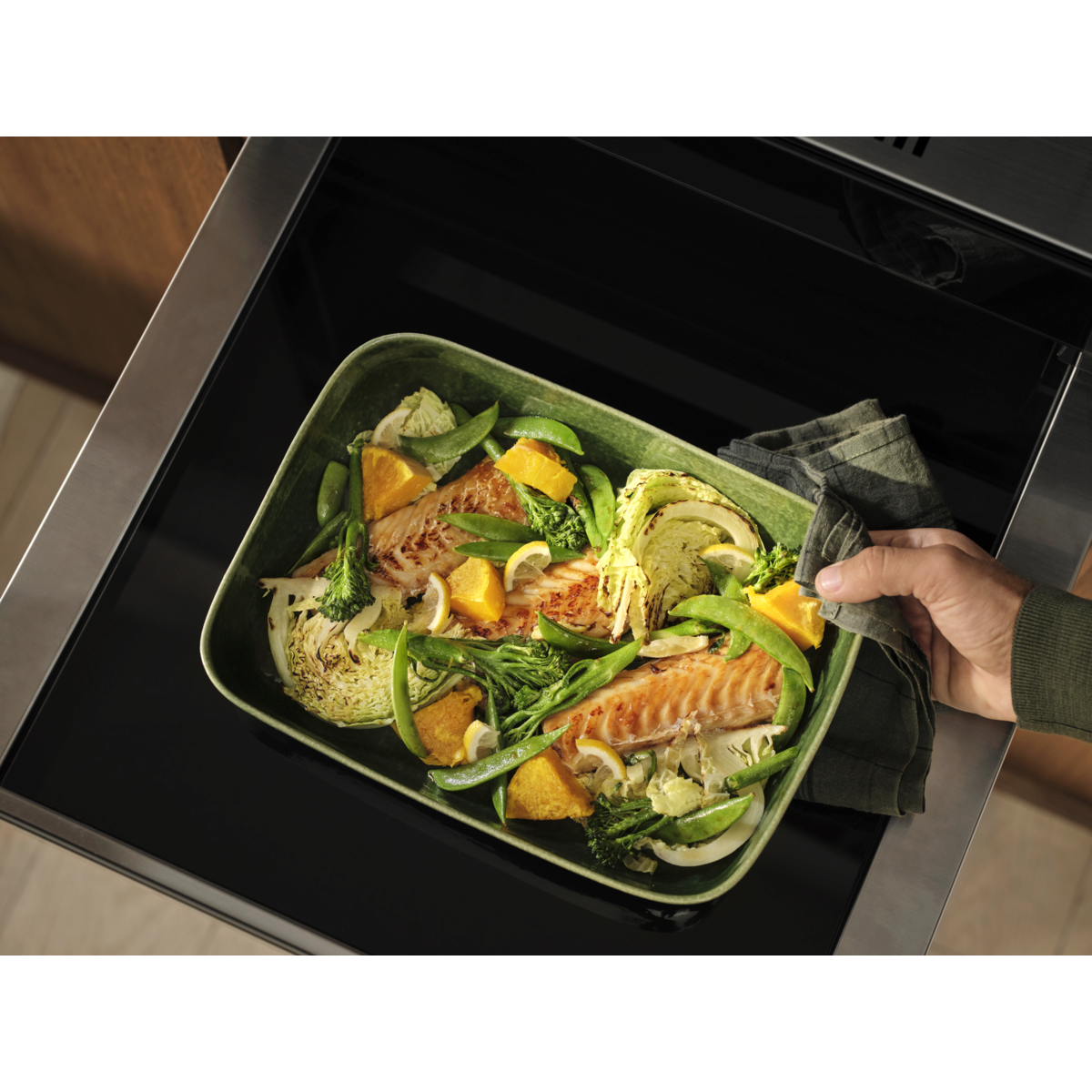 Dopo aver preparato il pasto perfetto, è facile mantenere i piatti e il cibo alla giusta temperatura di servizio con il cassetto scaldavivande.
