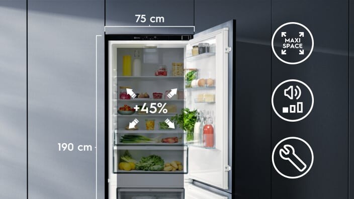 Le dimensioni dei frigocongelatori Electrolux sono ottimizzate per rientrare all’interno di ogni spazio cucina, ma garantire al tempo stesso capienza e funzionalità ottimali, anche dopo una spesa abbondante. Inoltre, grazie alla caratteristica libera installazione, è possibile adattare e combinare i frigocongelatori nello spazio, senza stravolgere le disposizioni della cucina.