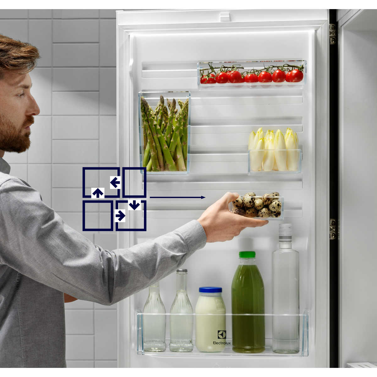 La tecnologia DynamicAir genera un flusso che fa circolare l'aria fredda nel frigorifero, assicurando una temperatura uniforme in tutti i punti ed evitando che gli ingredienti perdano forma o si asciughino.