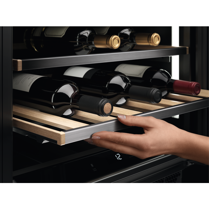 Metti in mostra la tua collezione con la soluzione premium 800 Perfect Shelving. I ripiani in legno estensibili sono progettati con una spaziatura ottimale per riporre tutte le principali bottiglie da 750 ml, compreso il tuo Champagne preferito, senza graffiarne le etichette.
