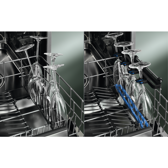 La lavastoviglie GlassCare 700 protegge i bicchieri e li fa brillare. I nostri esclusivi elementi SoftGrip e SoftSpike mantengono delicamente i bicchieri nella posizione giusta nel cesto superiore. Nel cesto inferiore, GlassHolder assicura la massima protezione anche ai bicchieri dallo stelo lungo.
