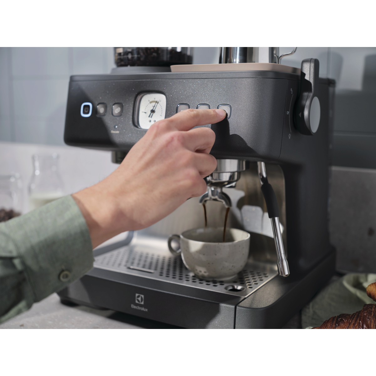 La tecnologia del doppio Thermoblock mantiene sempre costanti le temperature di erogazione e schiumatura. L’efficiente sistema di riscaldamento ti permette di estrarre l’espresso e montare il latte simultaneamente, permettendoti di gustare il caffè appena fatto senza attese.