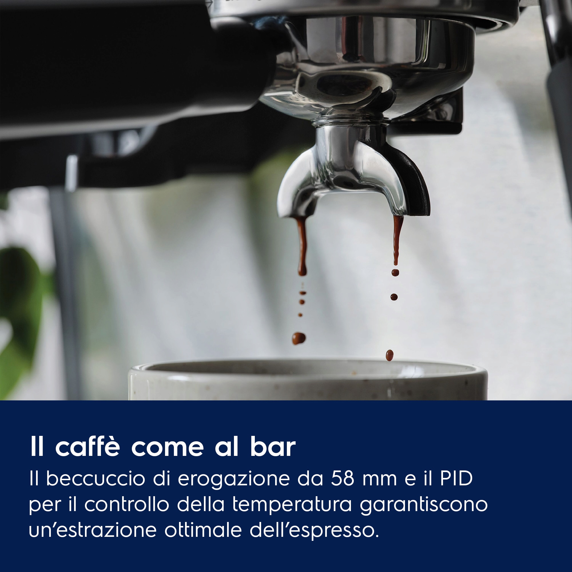 La tecnologia del doppio Thermoblock mantiene sempre costanti le temperature di erogazione e schiumatura. L’efficiente sistema di riscaldamento ti permette di estrarre l’espresso e montare il latte simultaneamente, permettendoti di gustare il caffè appena fatto senza attese.