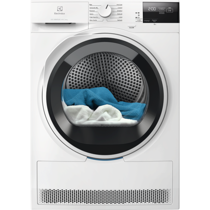L’asciugatrice GentleCare 600 a pompa di calore asciuga i capi uniformemente a temperature dimezzate senza prolungare la durata del ciclo, in questo modo i tessuti non sono esposti a calore non necessario. Questo preserva i capi, facendoli durare più a lungo.
