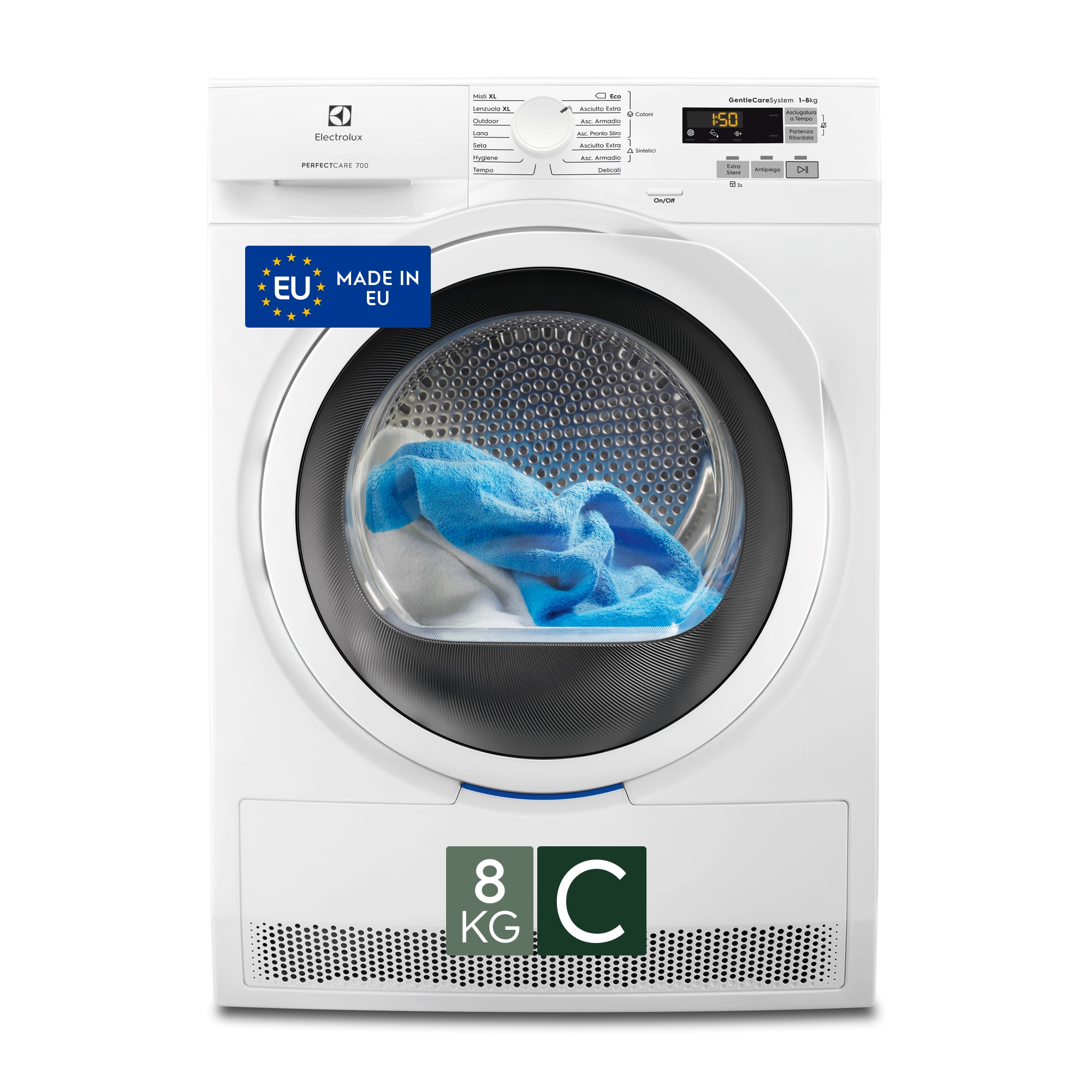 *Rispetto alla temperatura di ingresso dell’aria del cestello nelle asciugatrici convenzionali.