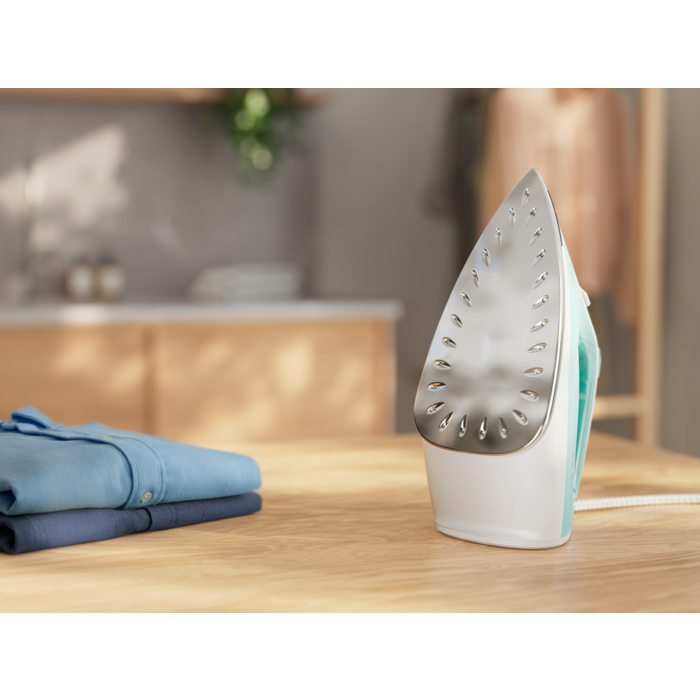 Il ferro da stiro a vapore Care 500 si riscalda velocemente per una rapida stiratura. Questo modello compatto è facile da usare e ha un imballaggio sostenibile che aiuta a ridurre l'impronta di carbonio.