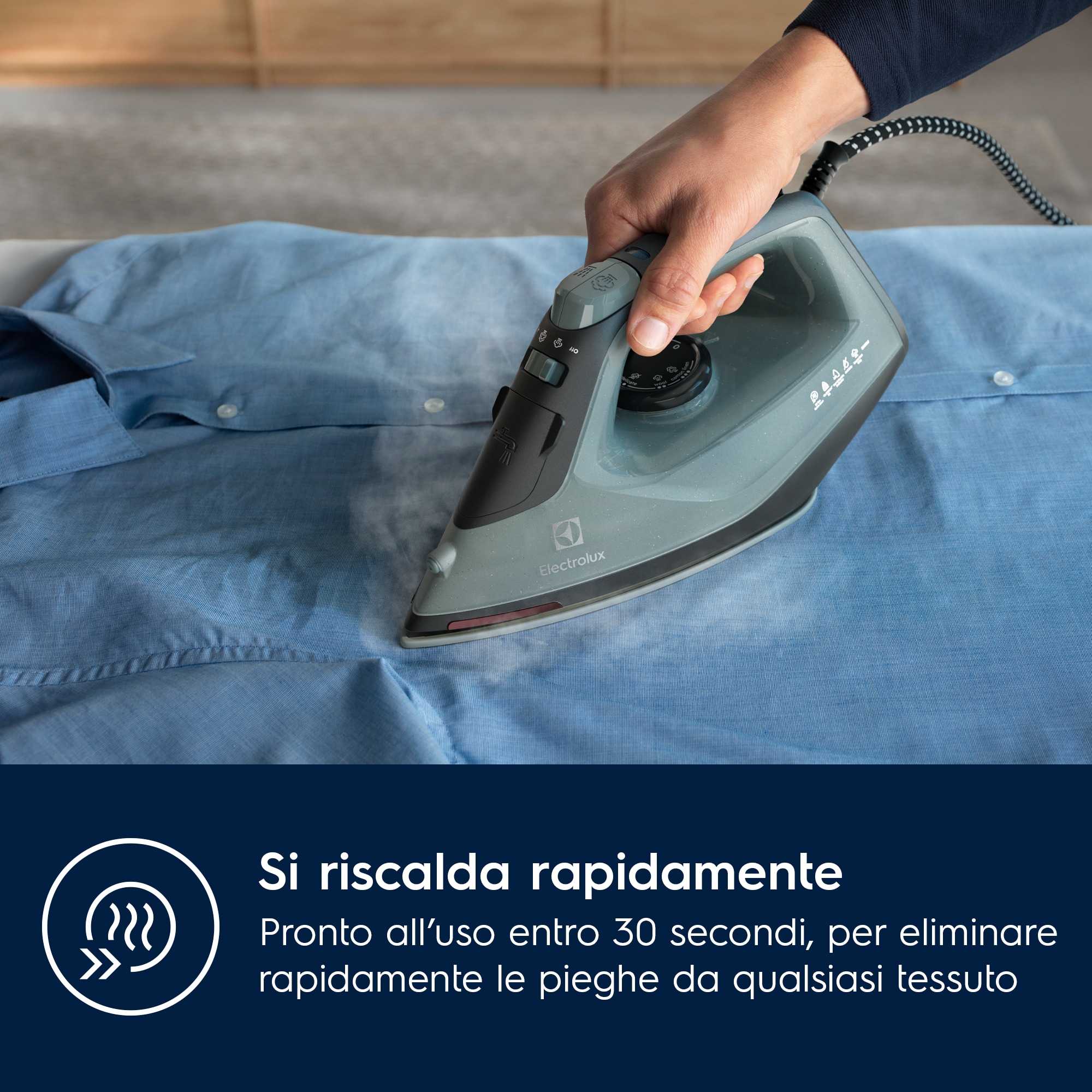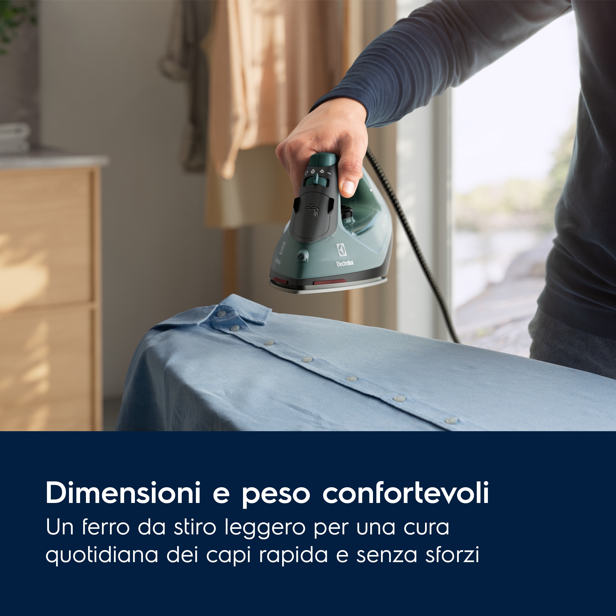 Il ferro da stiro a vapore Care 500 si riscalda subito ed elimina facilmente le pieghe dai capi. Questo modello compatto è facile da usare e occupa poco spazio, è realizzato in plastica riciclata e dispone di un imballaggio sostenibile che contribuisce a ridurre l'impronta di carbonio.