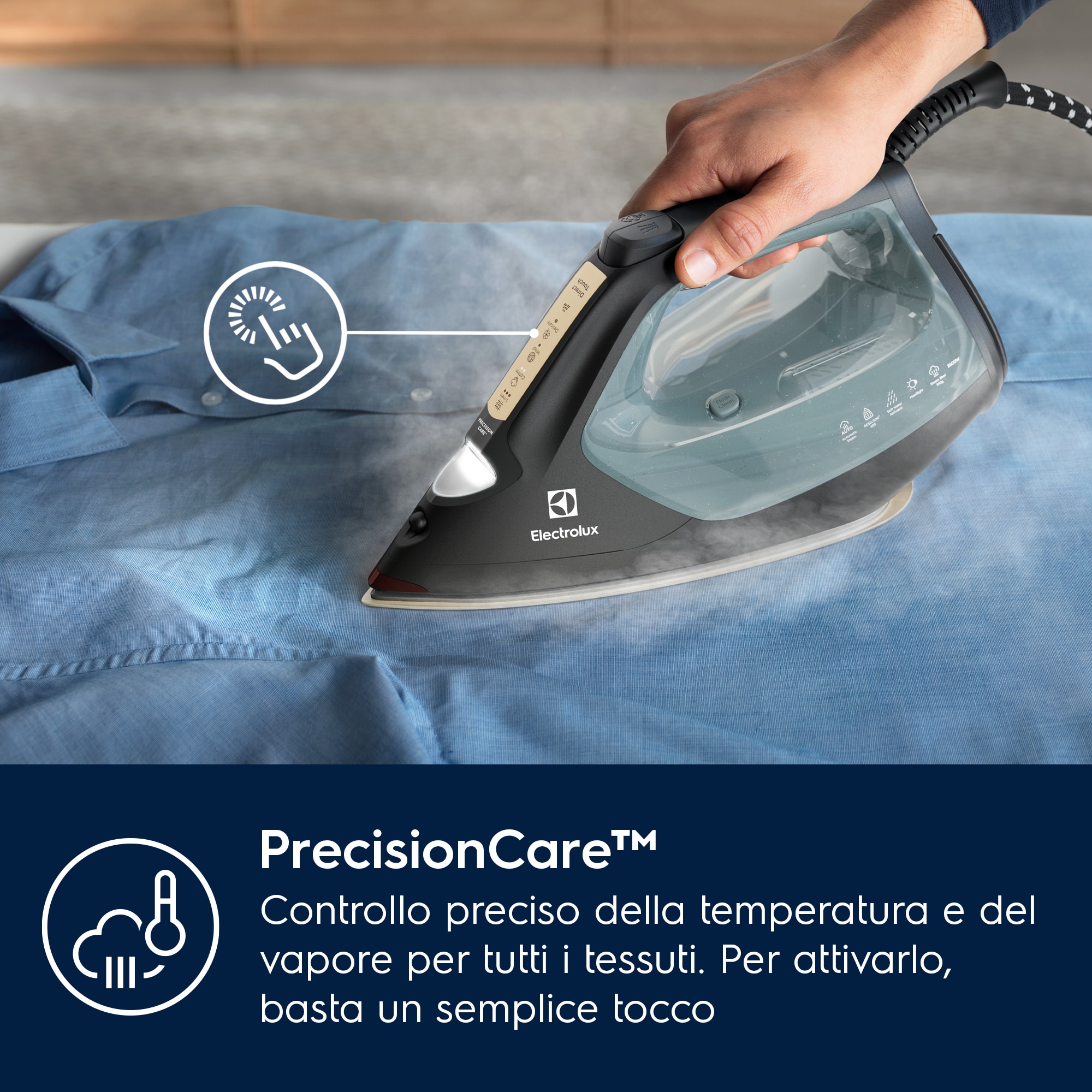 Il ferro da stiro a vapore Renew 800 garantisce una cura dei capi precisa. Per attivarlo, basta sfiorare il comando: vapore e calore precisi per qualsiasi tessuto. Realizzato con plastica riciclata e imballaggi sostenibili per ridurre l'impronta di carbonio.