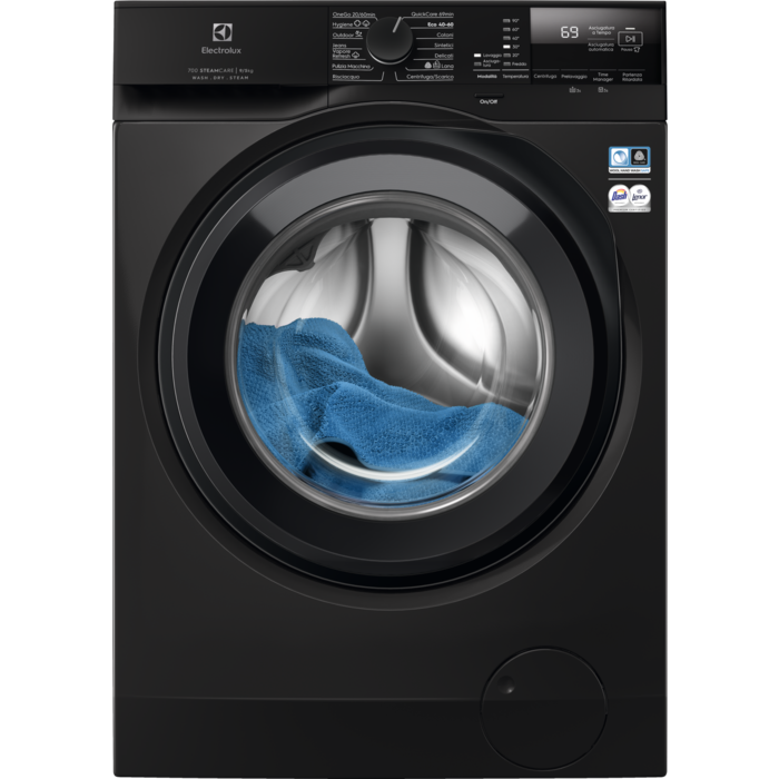 Lava, asciuga o rinfresca, tutto in un'unica macchina. Con la lavasciuga SteamCare 700 puoi lavare e asciugare anche la lana senza restringerla. Oppure usa il vapore invece del lavaggio completo, che richiede solo 25 minuti e consente di risparmiare fino al 96% di acqua*.