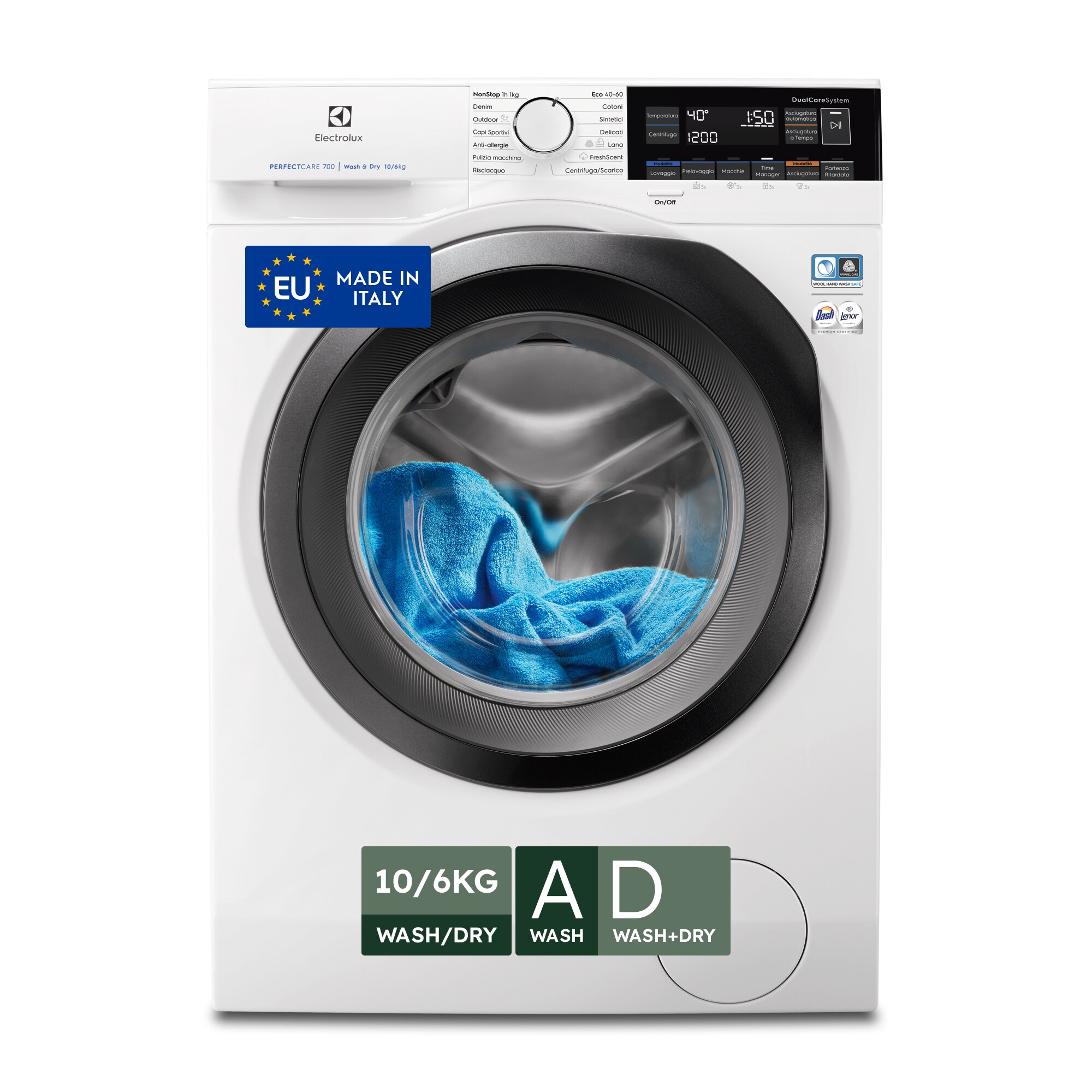 Raddoppia la cura e dimezza lo spazio con la gamma di lavasciuga Electrolux PerfectCare. La modalità Lava+Asciuga 60Min ti consente di lavare e asciugare i tuoi capi in un solo ciclo e in tutta rapidità, senza scendere a compromessi.