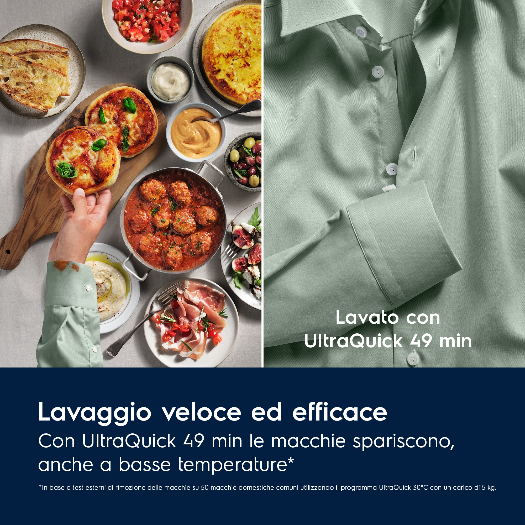*Basato su test esterno di rimozione delle 50 macchie più comuni utilizzando il programma UltraQuick a 30° con carico di 5kg.