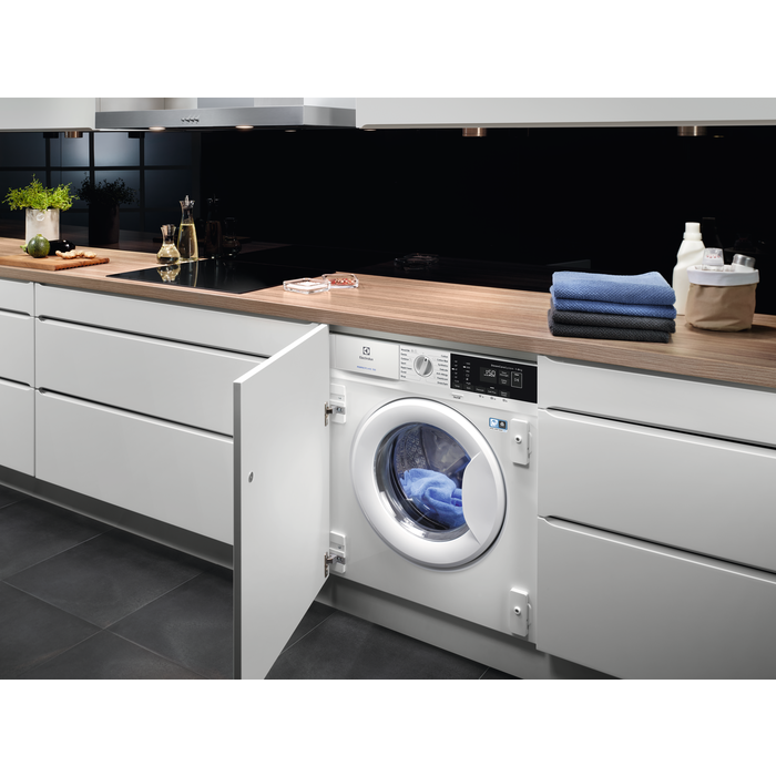 La lavatrice da incasso PerfectCare 700 è progettata per funzionare silenziosamente e integrarsi perfettamente nella tua casa. La Tecnologia SteamCare System termina ogni ciclo di lavaggio con uno sbuffo di vapore, riducendo le pieghe di un terzo e facilitando le operazioni di stiratura.