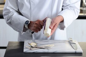 Far rapprendere il dolce in freezer o in abbattitore; dopodiché sformare all’interno del piatto di portata.