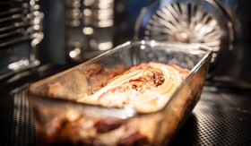 Cuocere per 35-40 minuti o finché uno stuzzicadenti inserito nel mezzo esca pulito. Lasciar raffreddare un po’ prima di affettare.