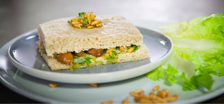 Per finire, aggiungi le olive, l'uvetta e i pinoli. Rosola per altri dieci minuti e poi riempi la focaccia con questo delizioso ripieno.