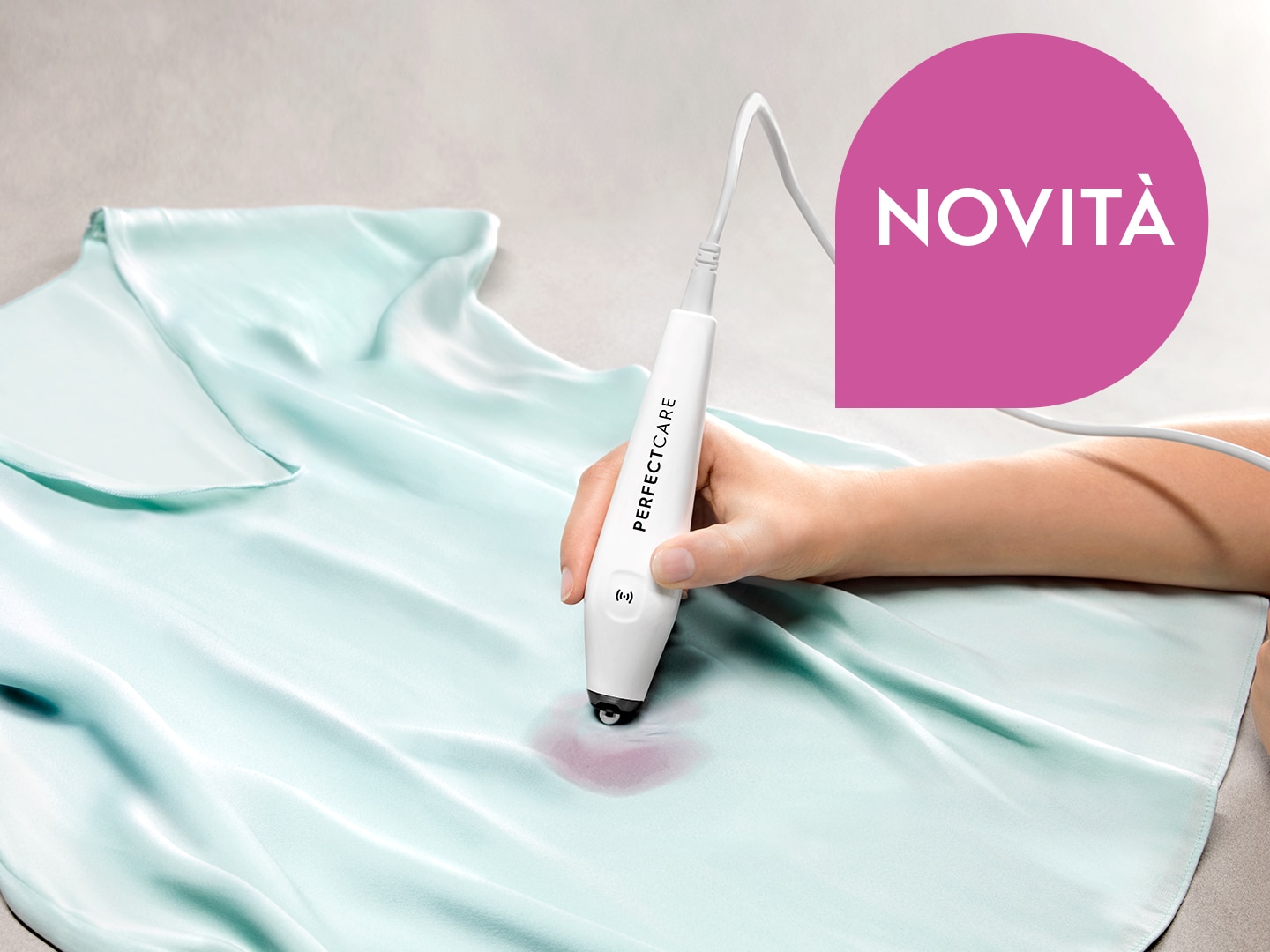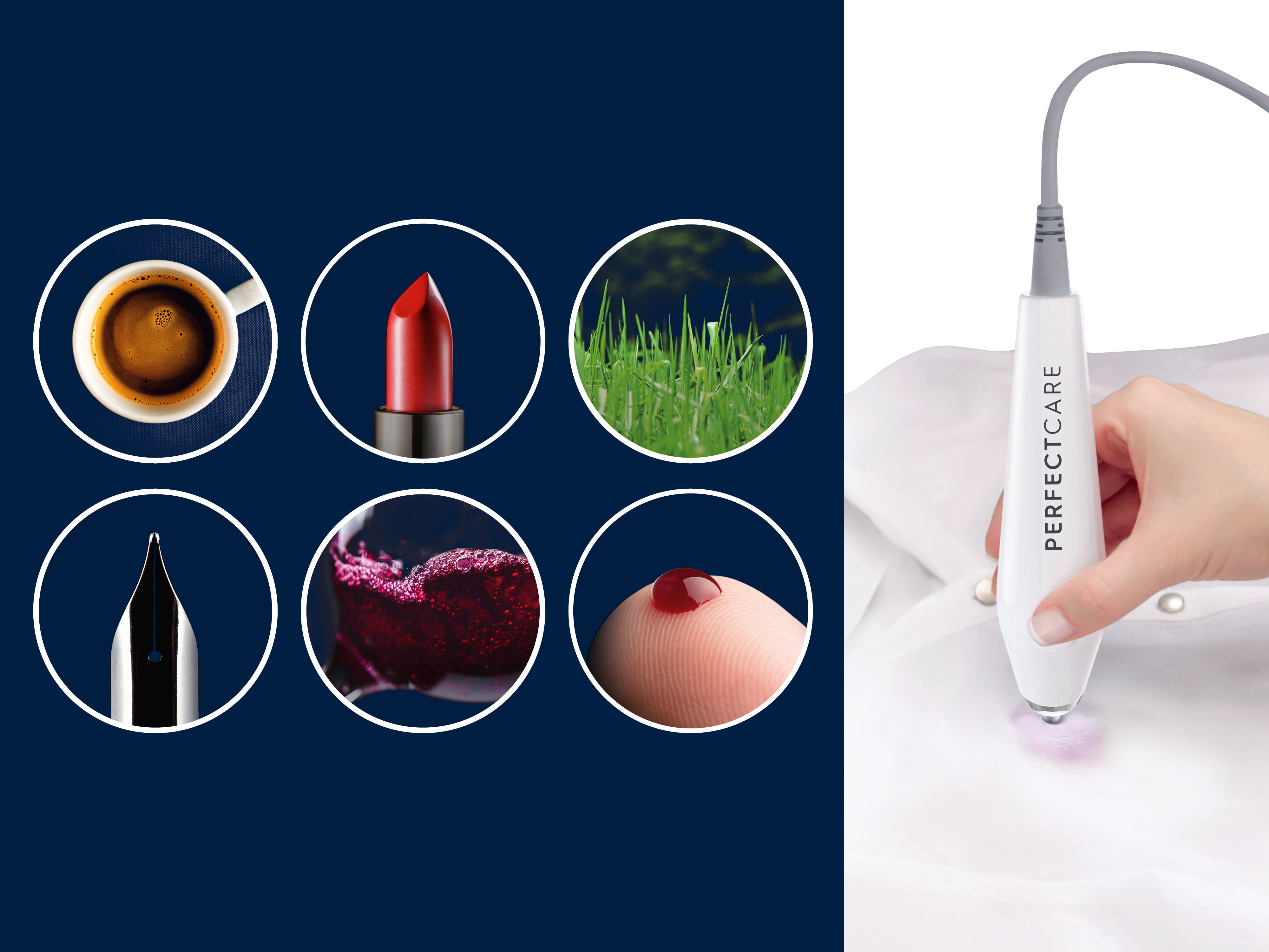 La penna utilizza una combinazione di acqua, detergente e tecnologia ad ultrasuoni. Trasmettendo migliaia di piccole vibrazioni, 46.000 al secondo (Hz), alle fibre dei tessuti, scioglie e scinde le singole particelle delle macchie, che scompariranno efficacemente con un semplice ciclo di lavaggio delicato.