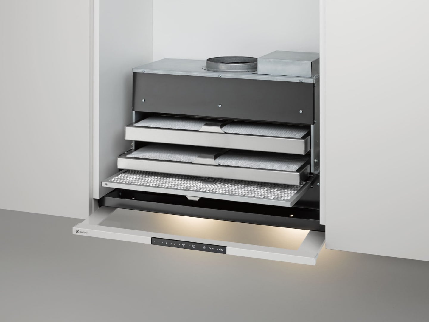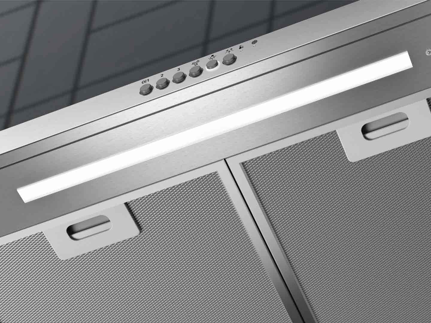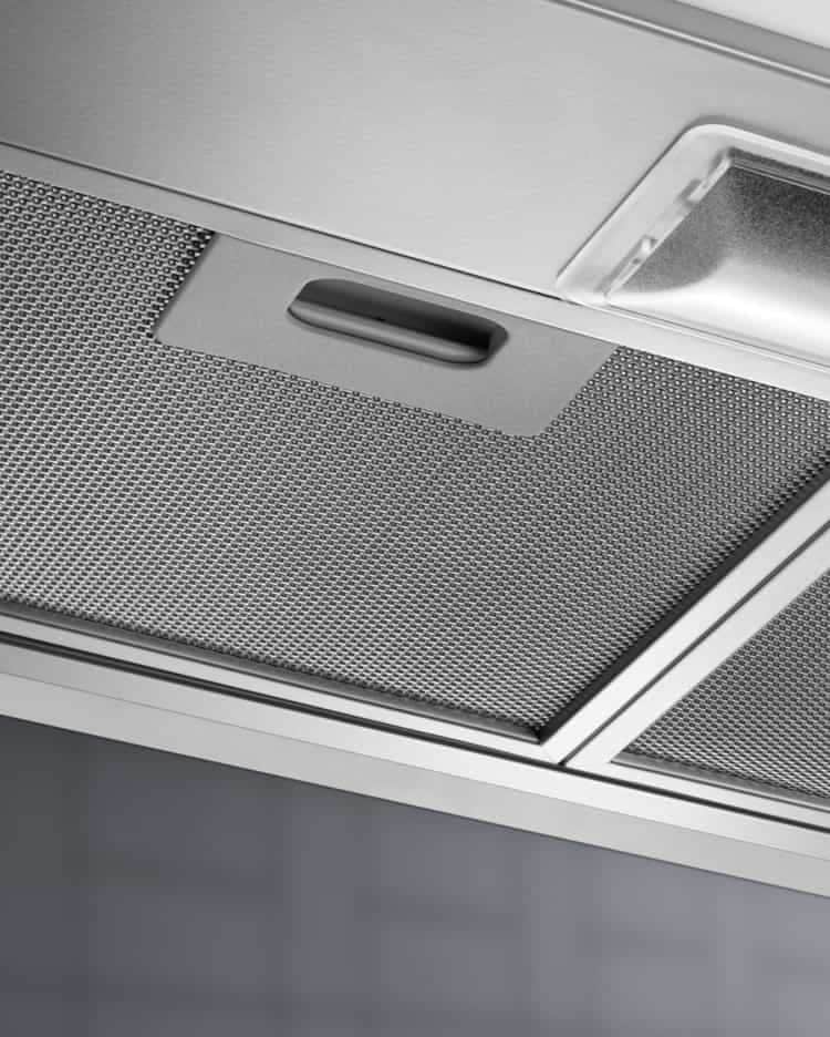 Tutte le cappe da cucina sono dotate di filtri anti-grasso. Questi filtri sono ideati per catturare le particelle di grasso contenute nel vapore, quando l’aria passa attraverso il filtro. Se nuovi o comunque puliti correttamente, tutti i filtri anti-grasso sono non infiammabili oppure ignifughi e autoestinguenti. In base alla tipologia, i filtri anti-grasso devono pertanto essere periodicamente sostituiti (filtri usa e getta) o puliti (filtri riutilizzabili). Così facendo, si evita la formazione di depositi di grasso indesiderati e antigienici, oltre a ridurre al minimo il rischio di incendio. Quanto più spesso è il filtro, tanto maggiore sarà la resistenza dell’aria e minore l’effetto di aspirazione. Si riducono, così, le prestazioni di ventilazione e, in genere, aumenta la rumorosità della cappa. Le cappe con una forza di aspirazione elevata hanno bisogno di filtri di un certo spessore, affinché il grasso non venga aspirato attraverso il filtro.