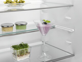 Grazie a FlexiShelf, puoi riorganizzare l’interno del frigorifero come preferisci. Il ripiano in vetro rimovibile e sdoppiabile scorre indietro oppure si estende completamente o solo a metà per fare spazio ai prodotti più alti. La giusta flessibilità per tutte le tue esigenze di conservazione degli alimenti.
