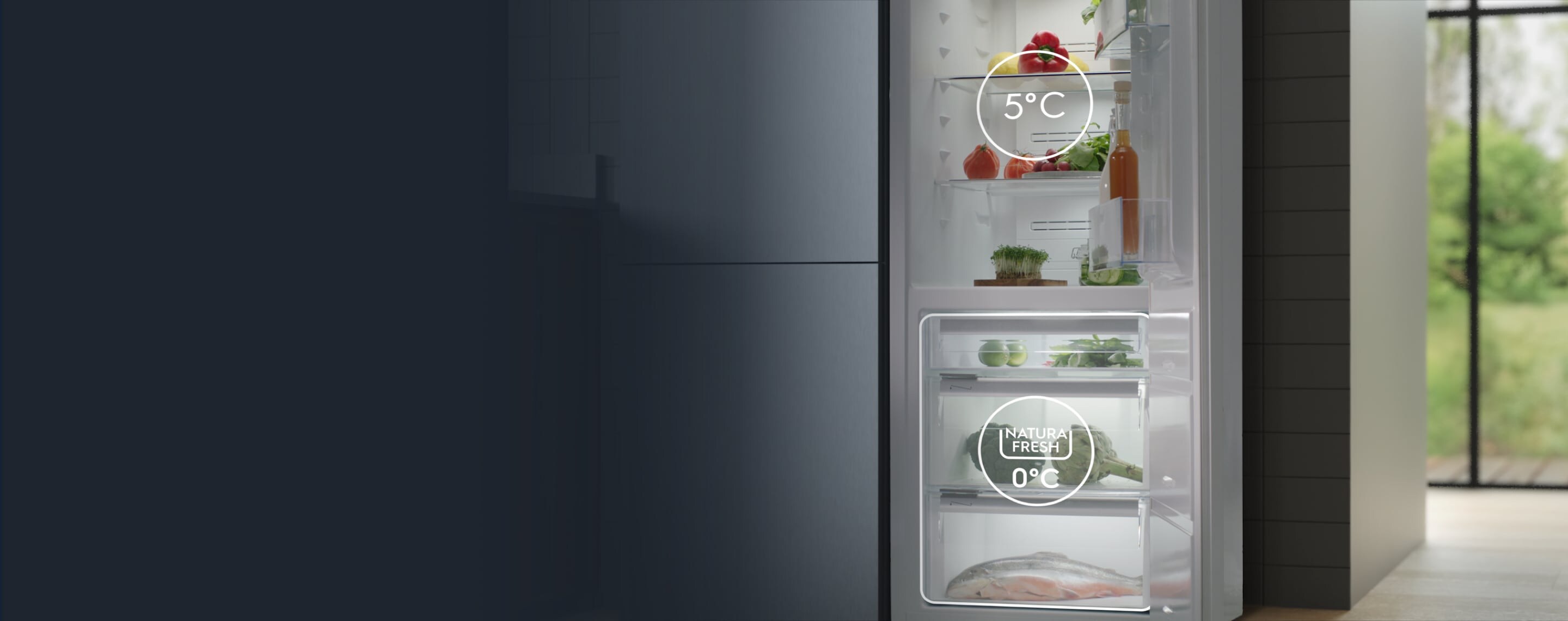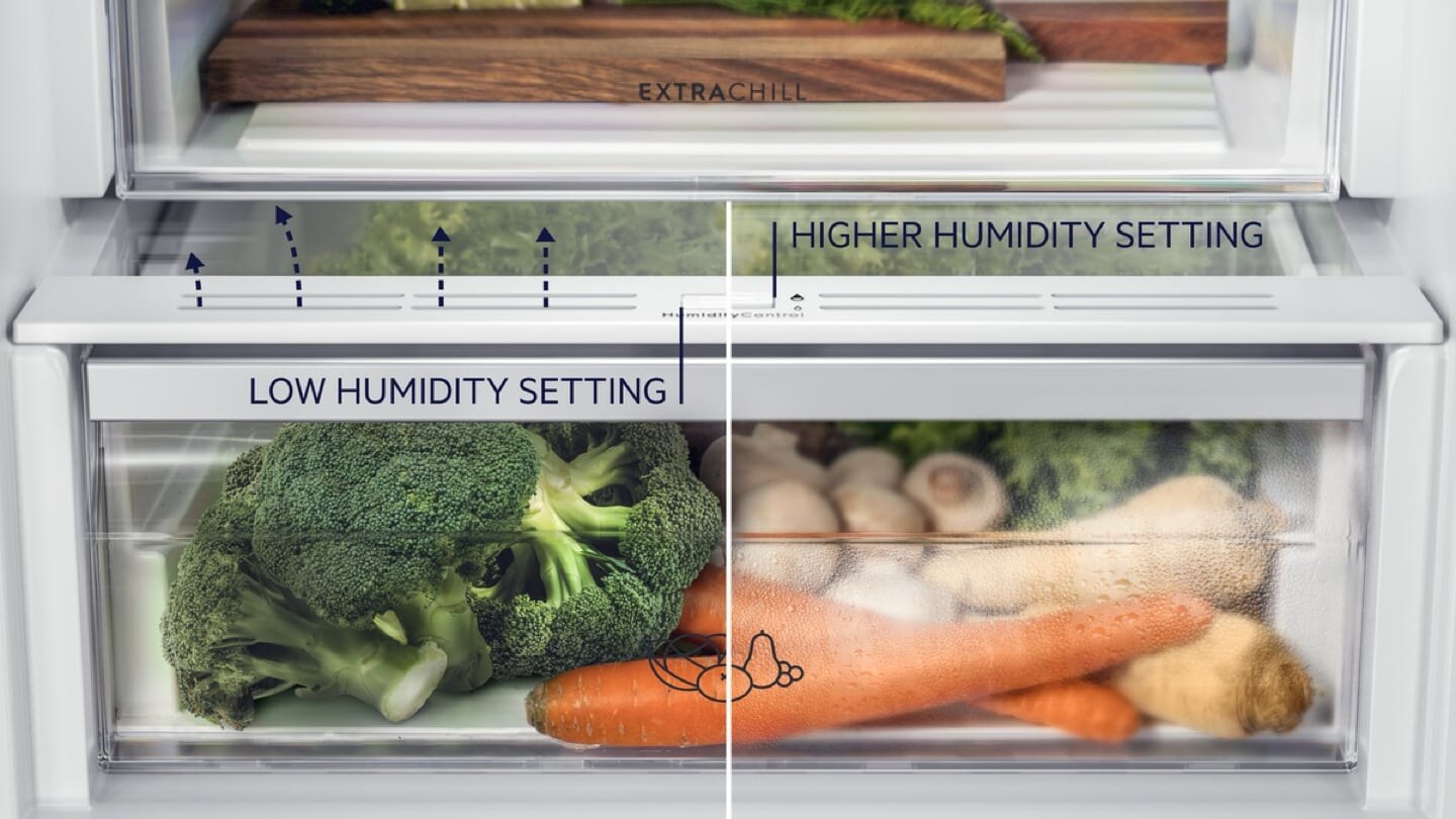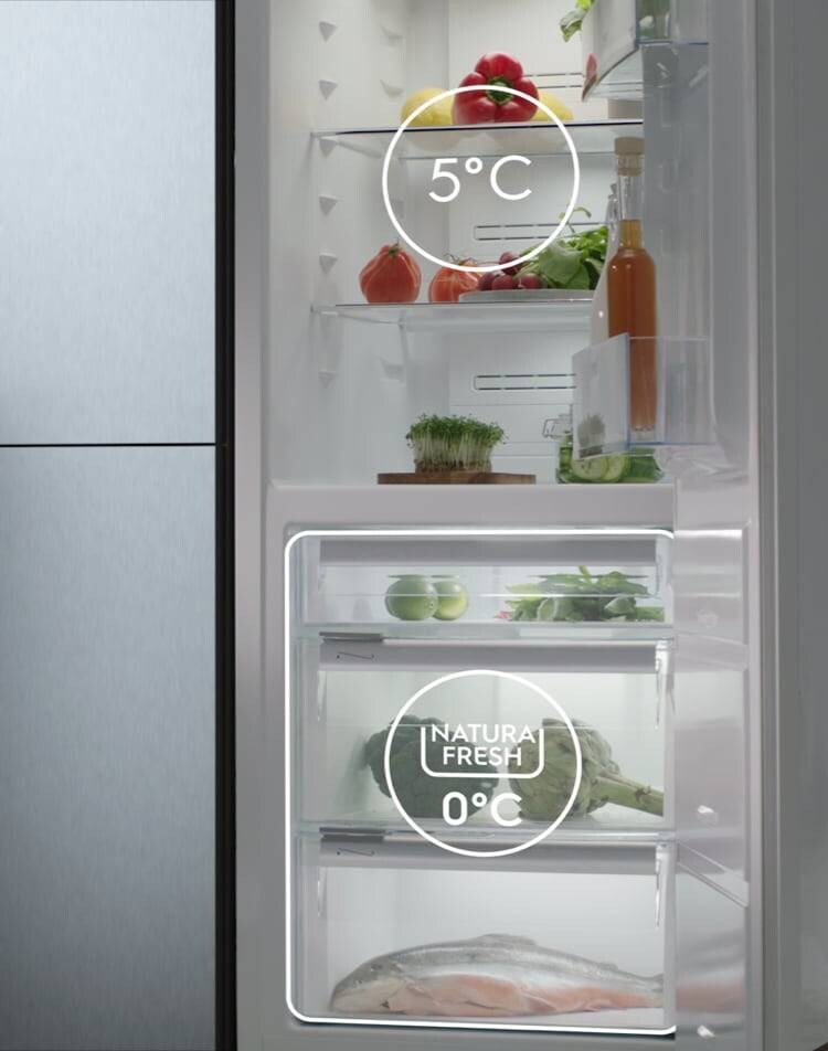 Gli scomparti indipendenti di 900 NaturaFresh 0 °C creano le condizioni perfette per la conservazione degli ingredienti più delicati. L’umidità è regolabile e gli scomparti più freddi a 0 °C sono ideali per la conservazione di pesce o carne.