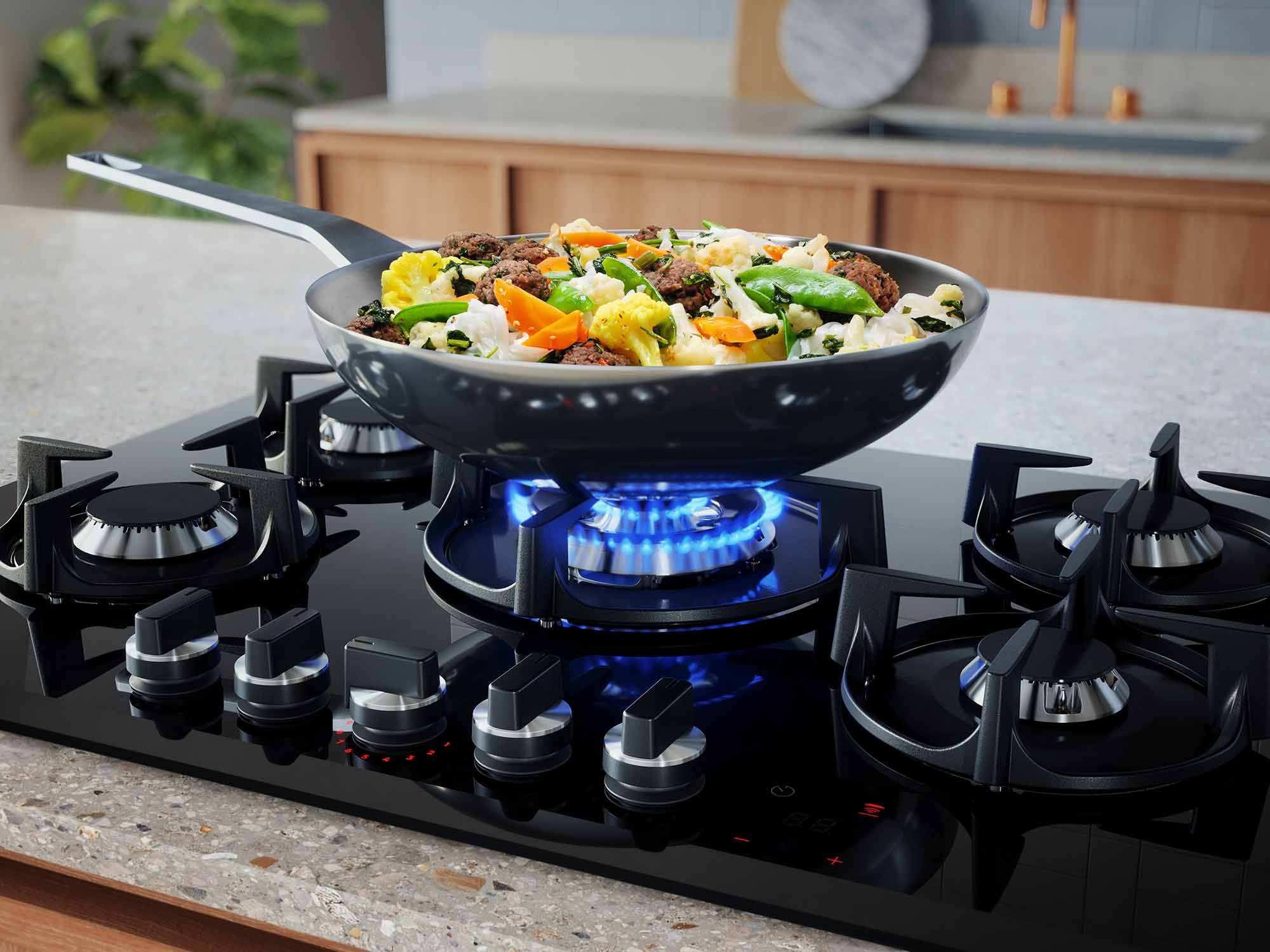 Grazie alle nuove manopole StepPower di Electrolux, avrai sempre pieno controllo della fiamma del tuo piano a gas durante la cottura. E con FlameLight, i LED luminosi rendono chiara la potenza del tuo piano cottura.