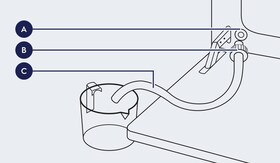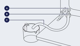 2. Inserire l'altra estremità del tubo di scarico (C) all'interno di un recipiente.